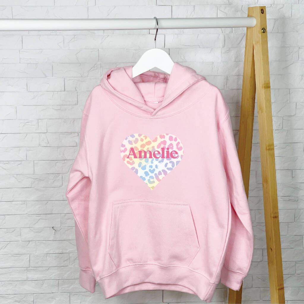 Girls Rainbow Animal Print Heart Personalised Hoodie