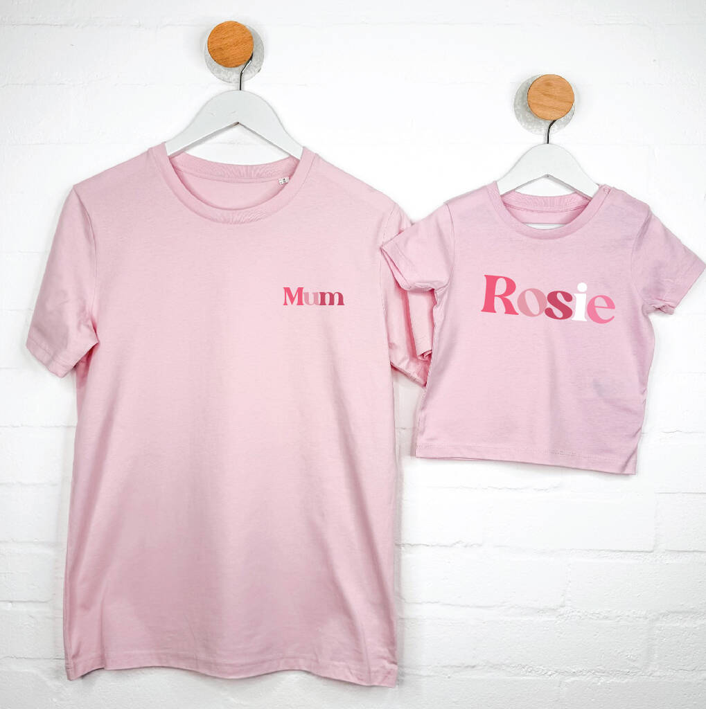 Personalised Mother And Daughter Matching Pink T Shirt Set