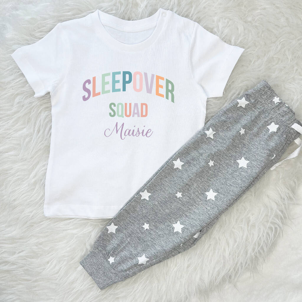Personalised Sleepover Squad Pyjamas Muted Rainbow