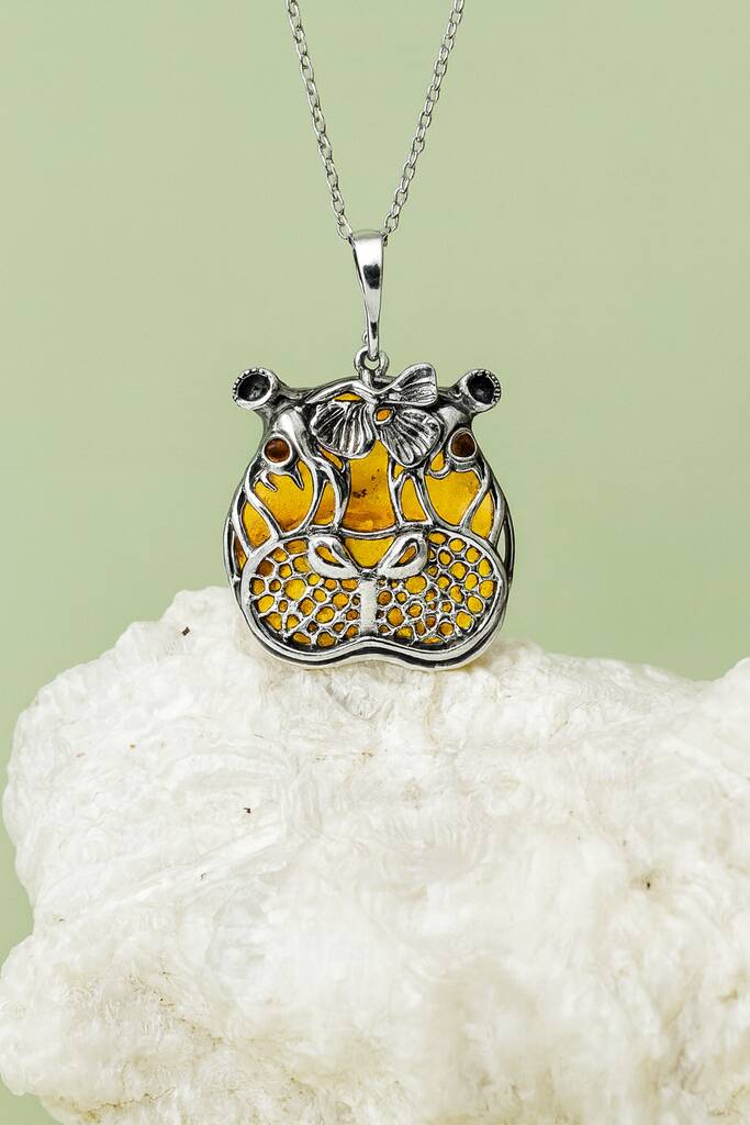Sterling Silver Amber Hippopotamus Necklace