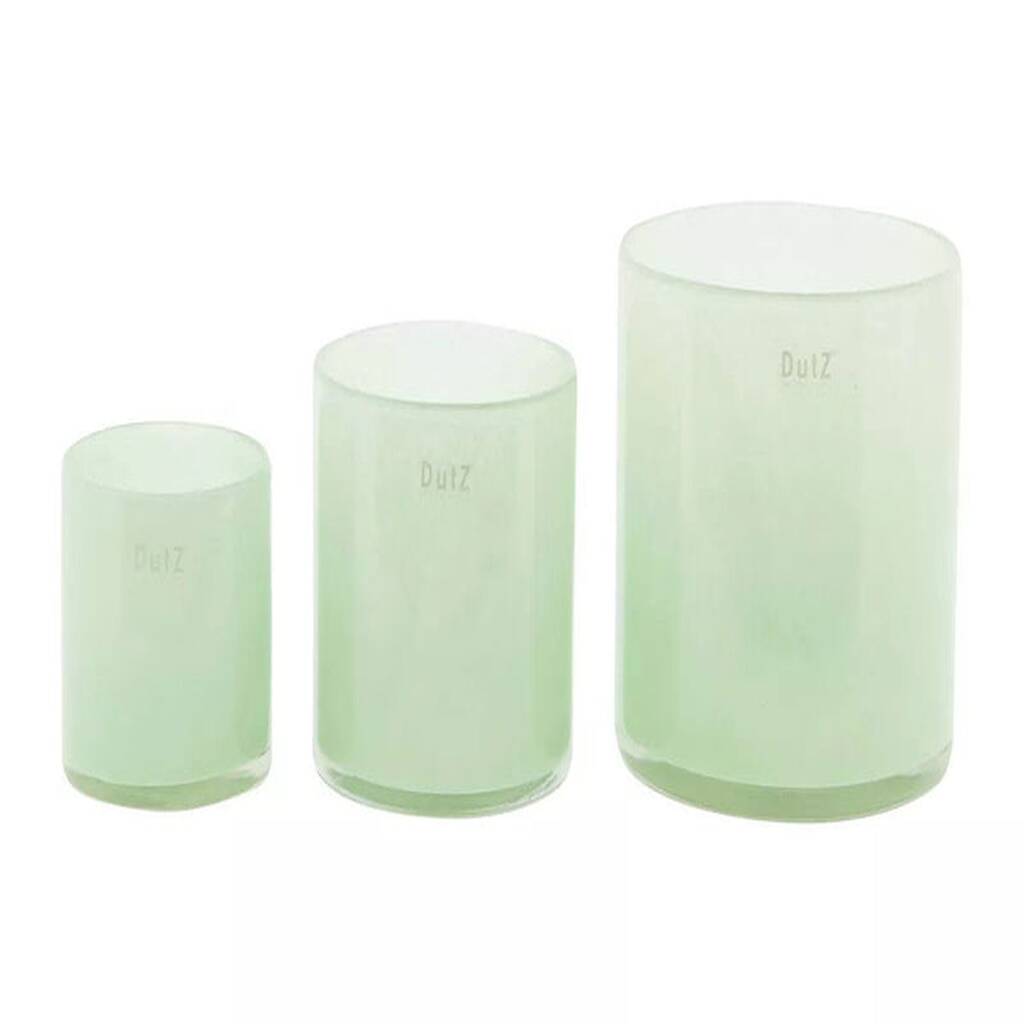 Multifunctional cylinder vase crafted from rich, heavy, luxurious glass; thick European glass, mouth-blown, ideal for flowers, plants, orchids, or glowing candleholder decor styling.The Menthol Glass Cylinder is a versatile mouth blown glass piece designed for flowers, plants, orchids, or candle use. Its transparent form glows beautifully when lit, enhancing vintage and Scandi interiors alike. Each cylinder is handcrafted by European master glassblowers using traditional techniques preserved for generations. Subtle variations in colour, shape, and finish celebrate authentic craftsmanship. Made from rich, heavy, luxurious glass with a thick structure, the colouring is mixed within the glass itself. Small air bubbles or marks naturally occur during production, giving every piece individuality, durability, and timeless decorative appeal for modern homes, designers, florists, collectors, worldwide, today.