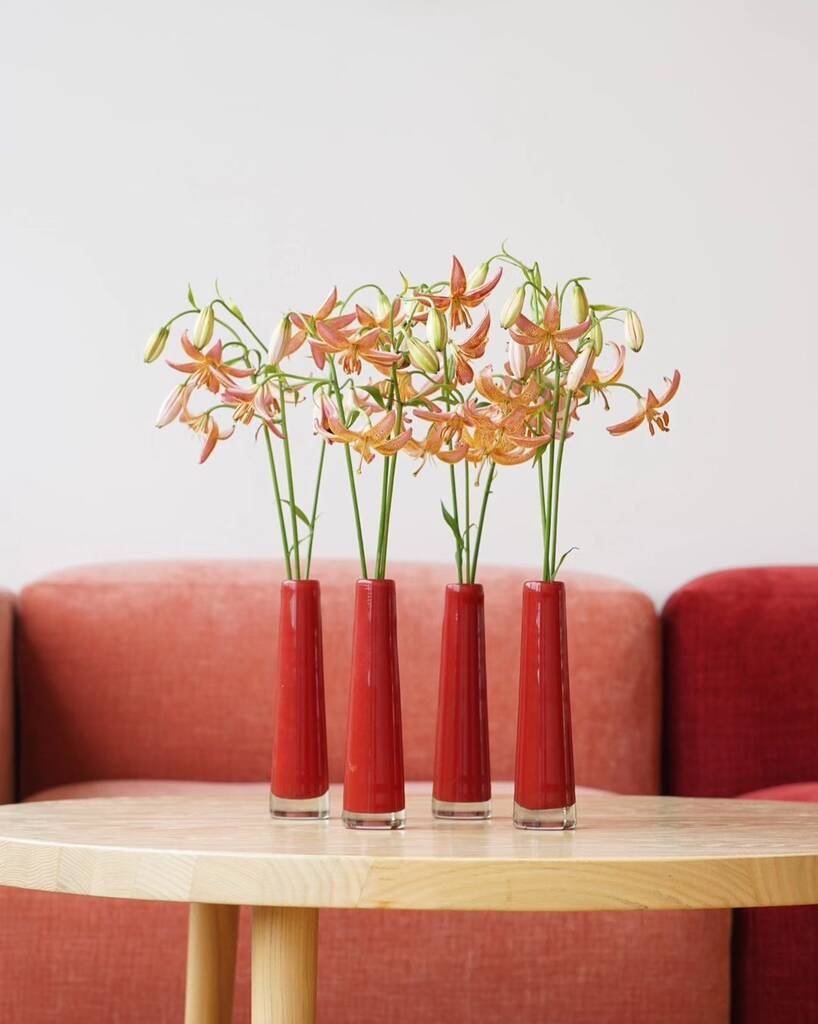 SOLIFLEUR vases are perfect for just one single flower, a rose, tulip, or hyacinth. Our spread out a bouquet. Mix and match colours and sizes.