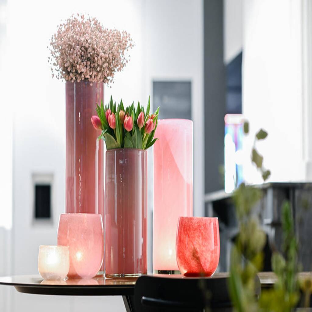 A rich, heavy vase crafted from luxurious glass, thick European glass, offering tall elegant cylinder design perfect for displaying long floral stems with refined style.The Tall Glass Cylinder by DutZ is a refined, mouth-blown statement piece designed to beautifully present bouquets or long floral stems. Crafted by European master glassblowers, each vase displays unique variations in shape, clarity, and colour that reflect the authenticity of traditional glassmaking. Made from rich, heavy glass with the colour blended into the material, it provides durability and a luxurious visual presence. Its timeless cylindrical silhouette fits effortlessly into Scandi, modern, vintage, and minimalist interiors. Ideal for tabletops, consoles, or centrepieces, this tall vase elevates any arrangement while standing out as a distinguished design feature on its own.
