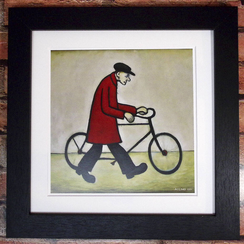 Framed 'Bicycle Man' Print. Lowry Style
