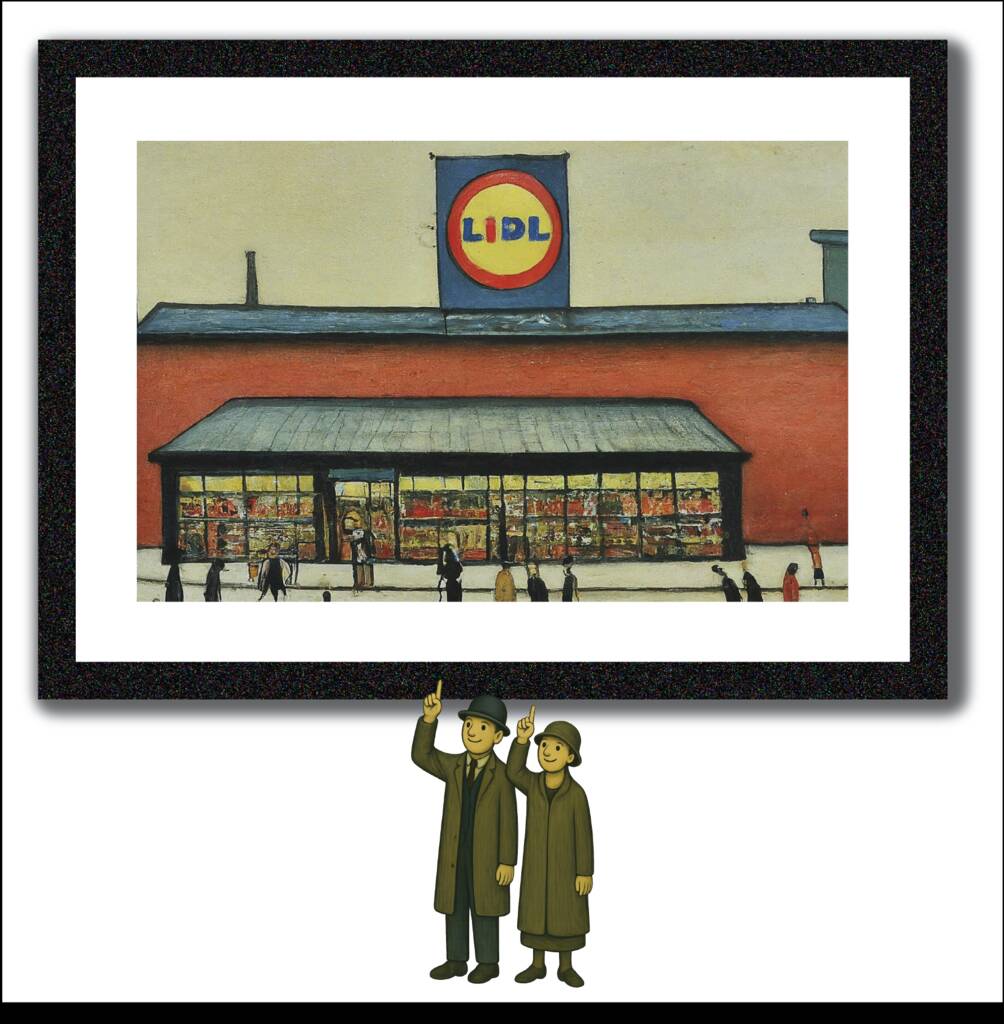 Framed 'Lidl Supermarket' Novelty A4 Lowry Style Art Print