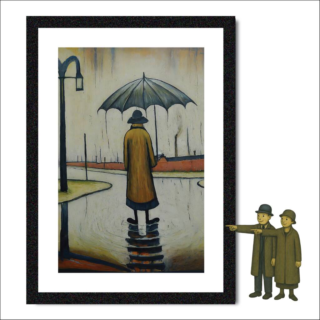 Framed 'Man With Umbrella' A4 Lowry Style Art Print