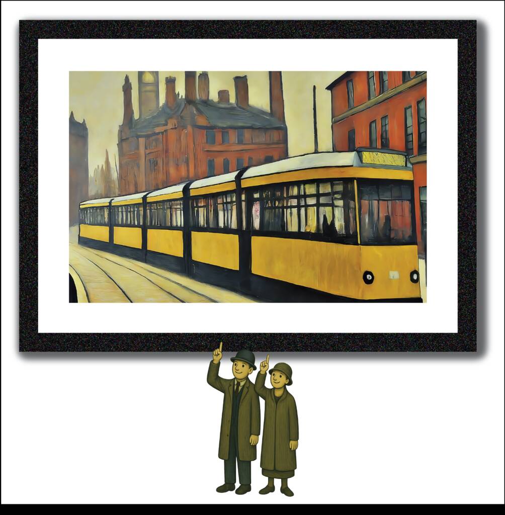 Framed 'Metrolink Tram' A4 Lowry Style Art Print