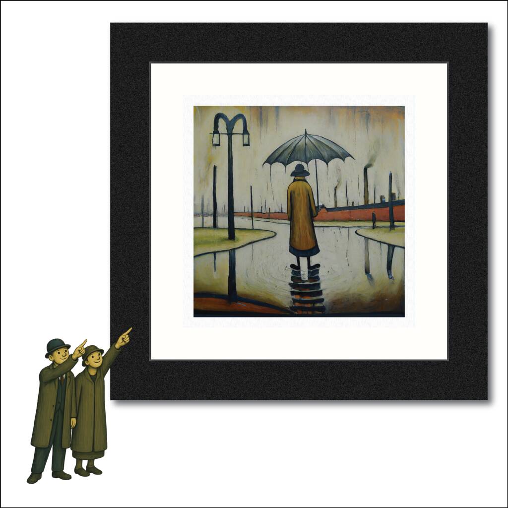 Framed 'Umbrella In The Rain' Print. Lowry Style