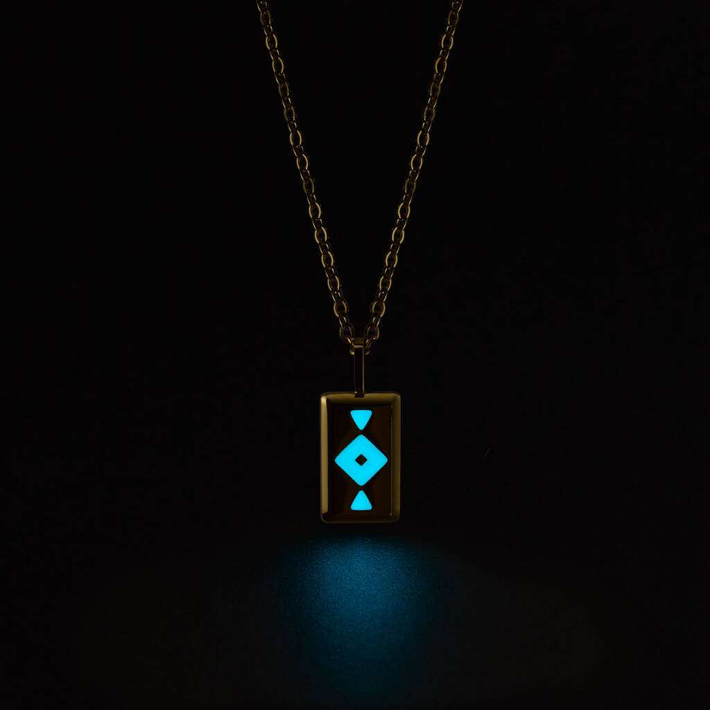 Blue Gaia Aqua Blue Glowing Pendant Necklace With Uv Keyring Torch
