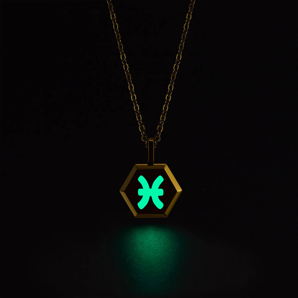 Pisces Zodiac Glowing Pendant Necklace With Uv Keyring Torch