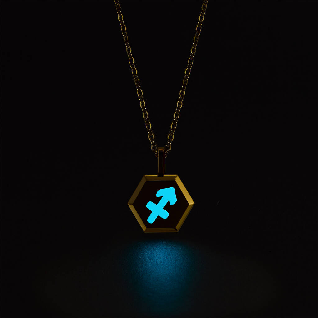 Sagittarius Zodiac Glowing Pendant Necklace With Uv Keyring Torch