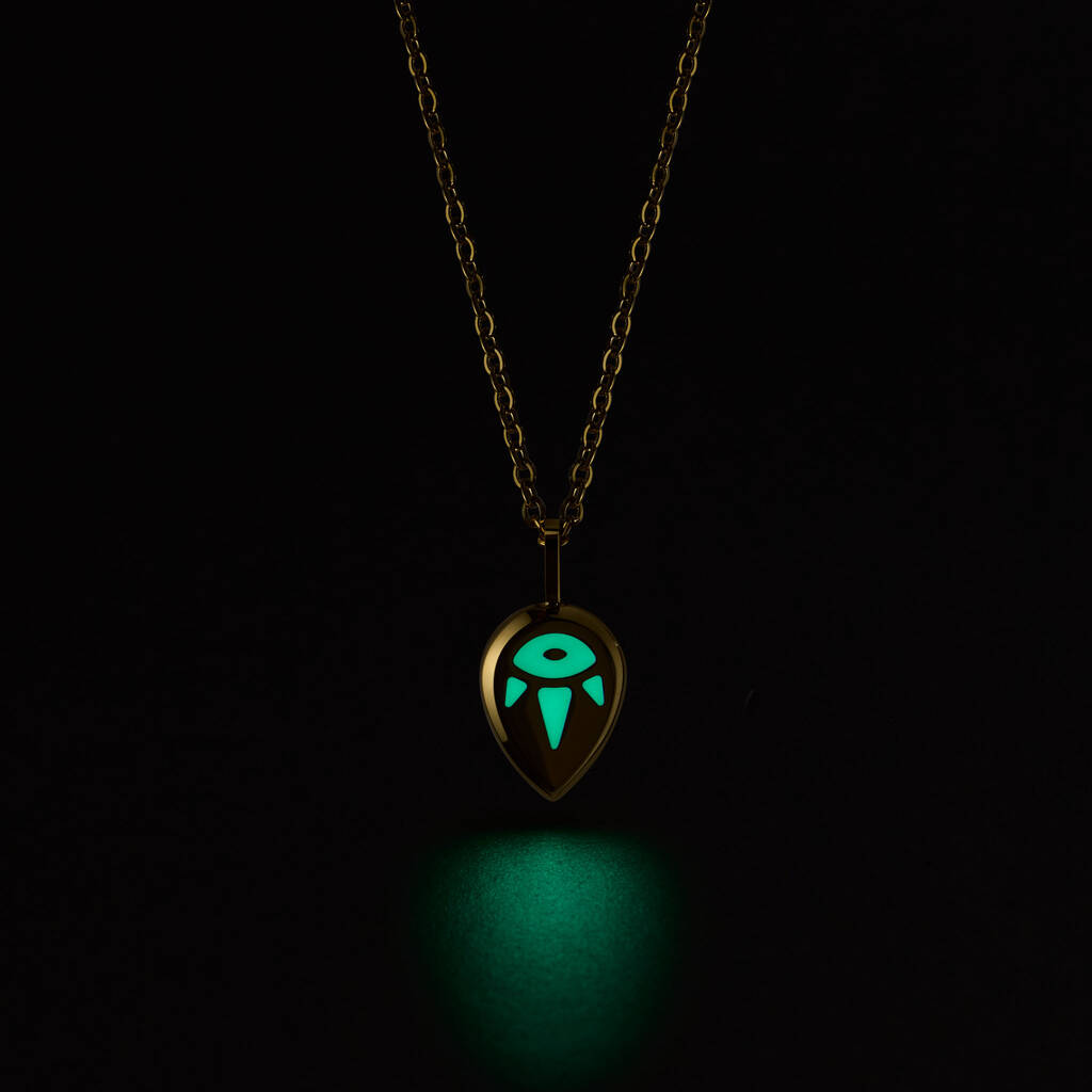Turquoise Serene Mint Green Glowing Pendant Necklace With Uv Keyring Torch