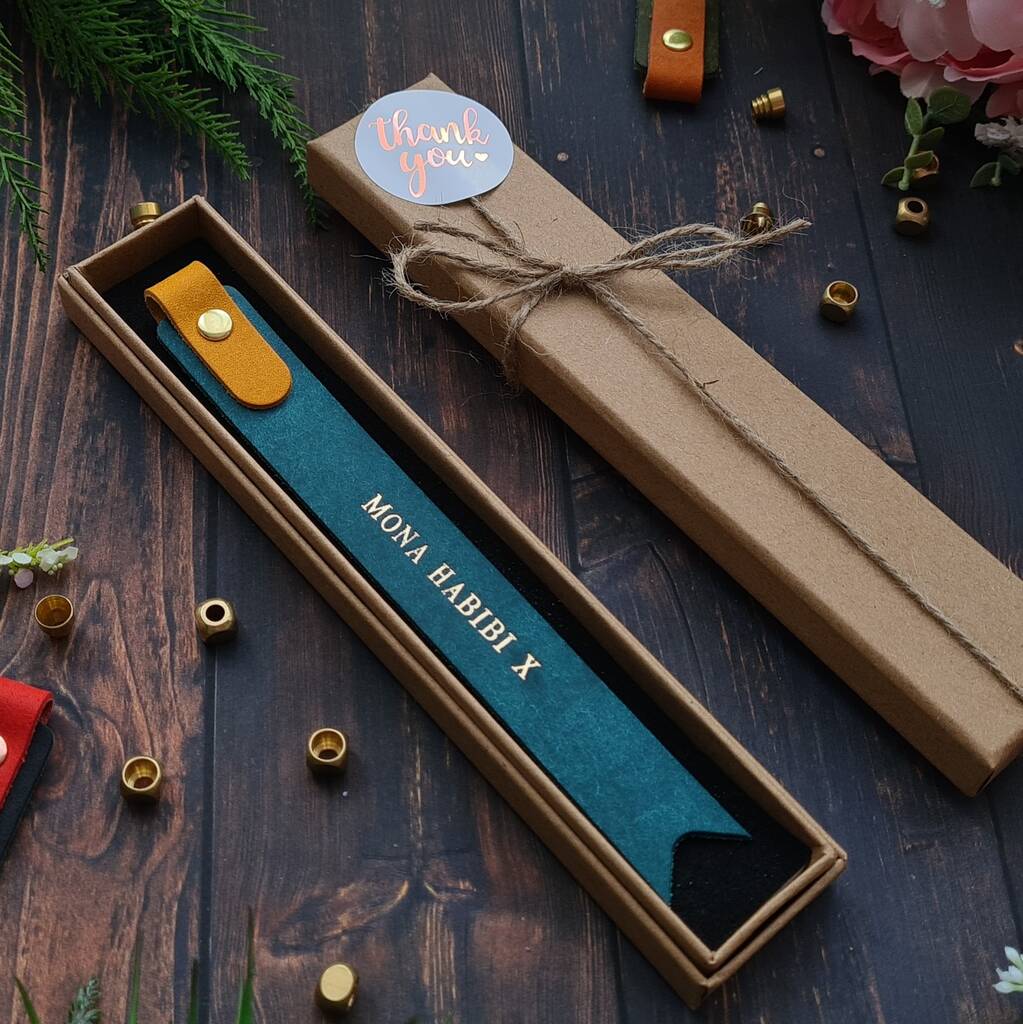 Nothing beats a freshly designed sleek personalised leather bookmark to help you keep track of the pages when reading.Tired of folding page corners or losing your place? Our Personalised Leather Bookmark is the perfect solution—stylish, practical, and crafted to last. Designed for book lovers, students, and gift-givers, this elegant accessory can be engraved with a name, heartfelt message, or meaningful quote, turning it into a unique keepsake. Handmade with care, it’s more than a bookmark—it’s a personal touch that makes reading even more special. Whether for yourself or a loved one, this bespoke piece is a thoughtful gift that celebrates individuality and the joy of reading. Cherish every chapter with a bookmark made just for you.