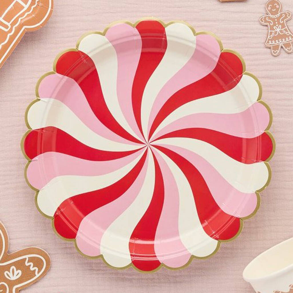 Christmas Candy Swirl Paper Plates Red And Pink Pack Of Eight