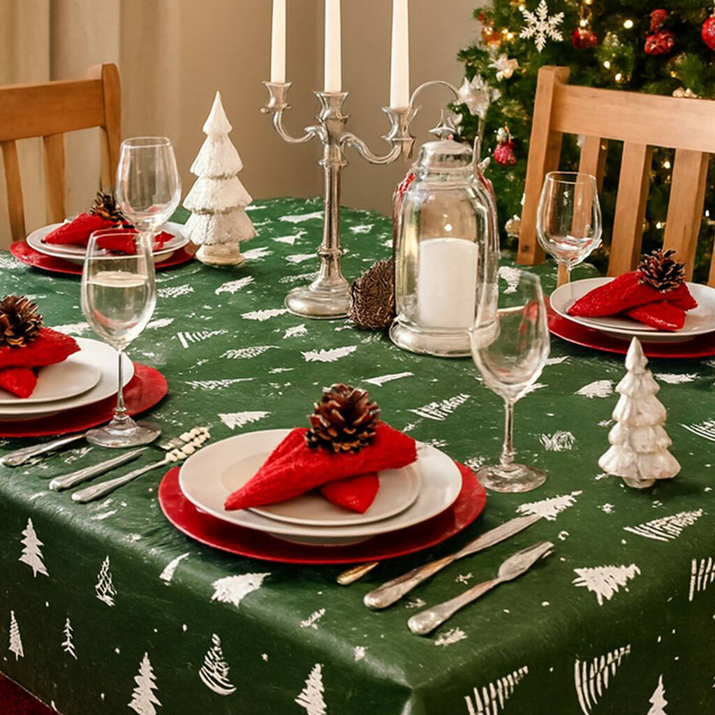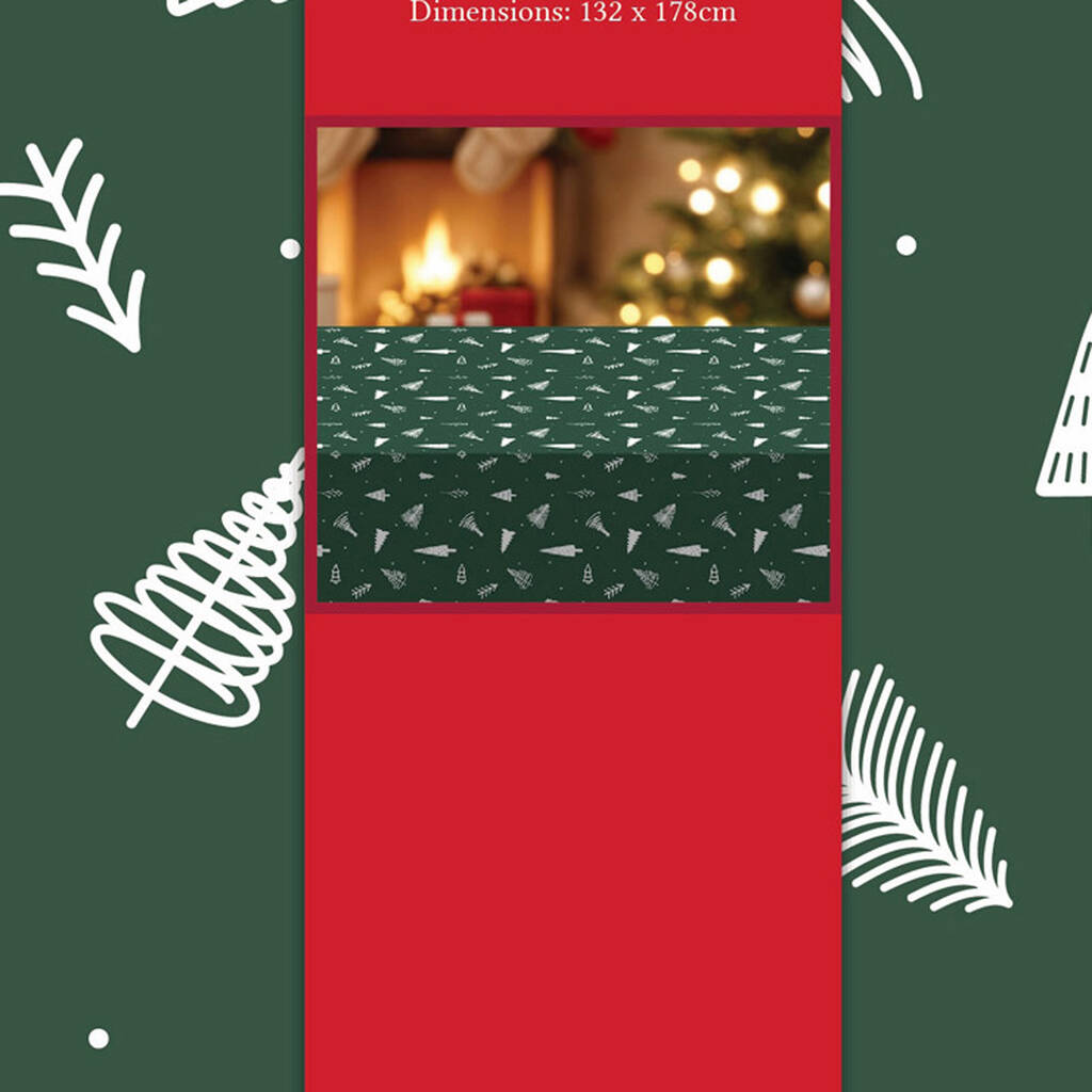 Christmas Green Tree Tablecloth 132x178cm Festive Holiday Decor Wipe Clean