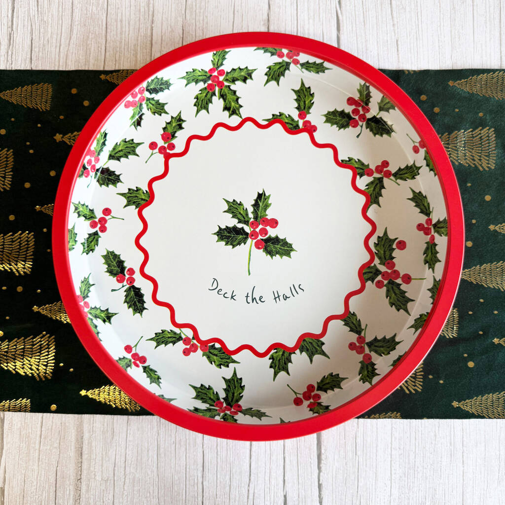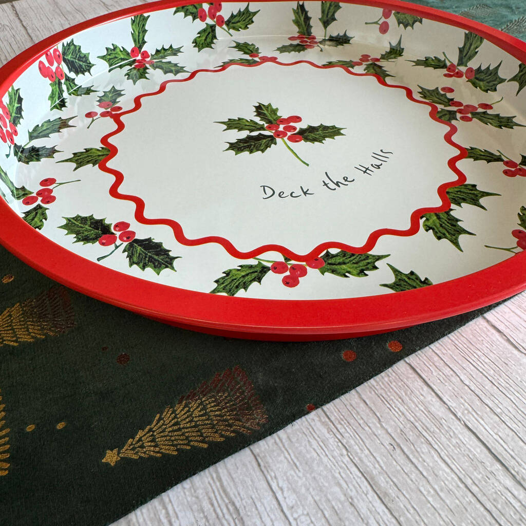 Christmas Holly Green And Red Christmas Metal Drinks Tray