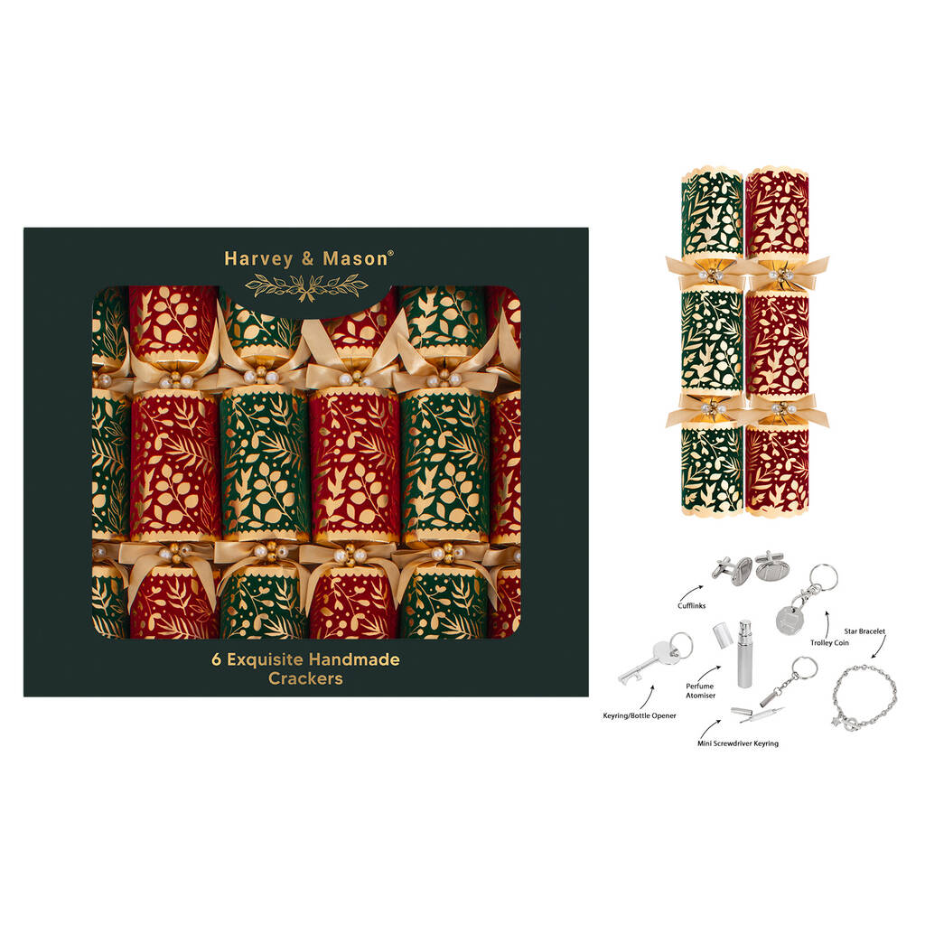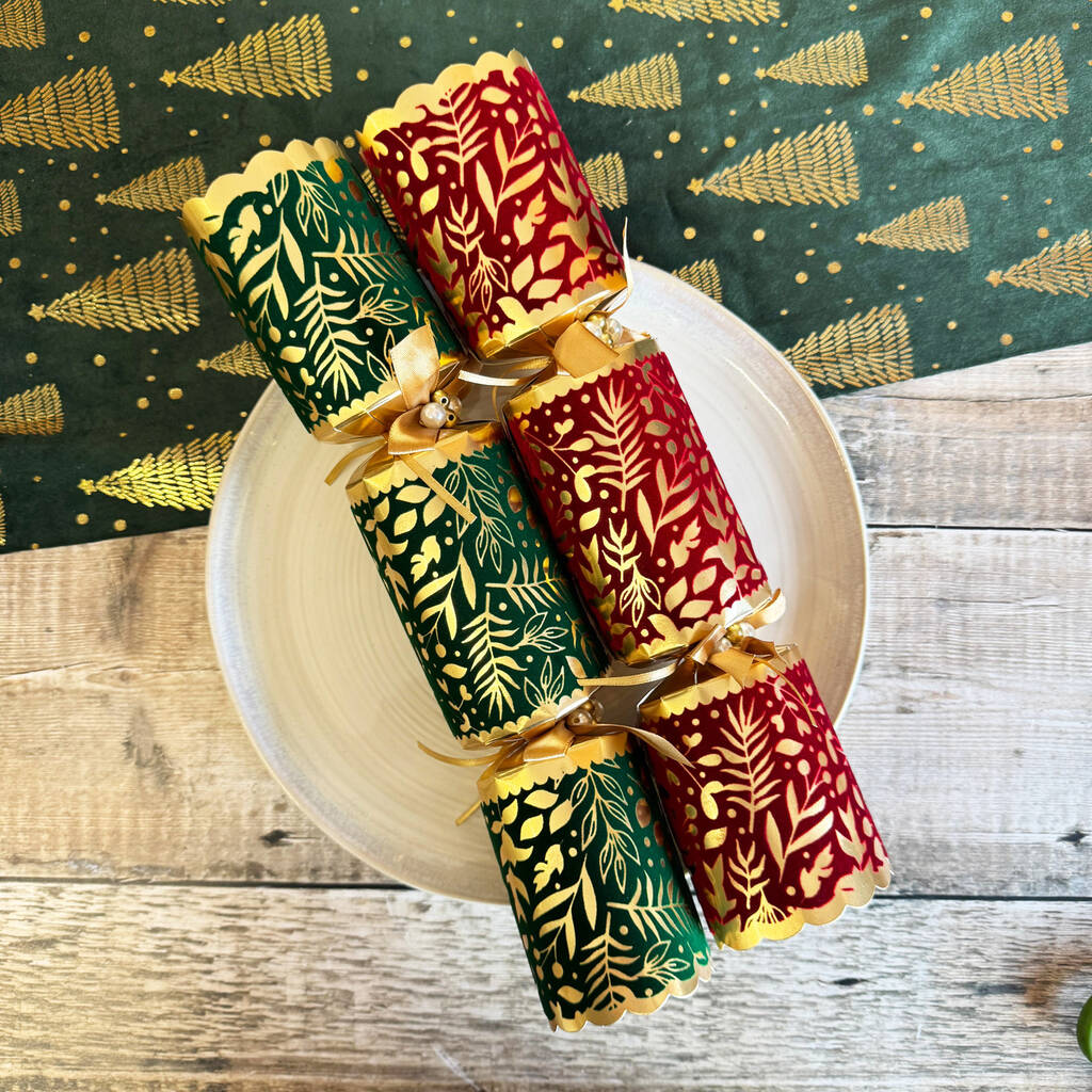 Elegant Green And Red Christmas Crackers Set Of Six