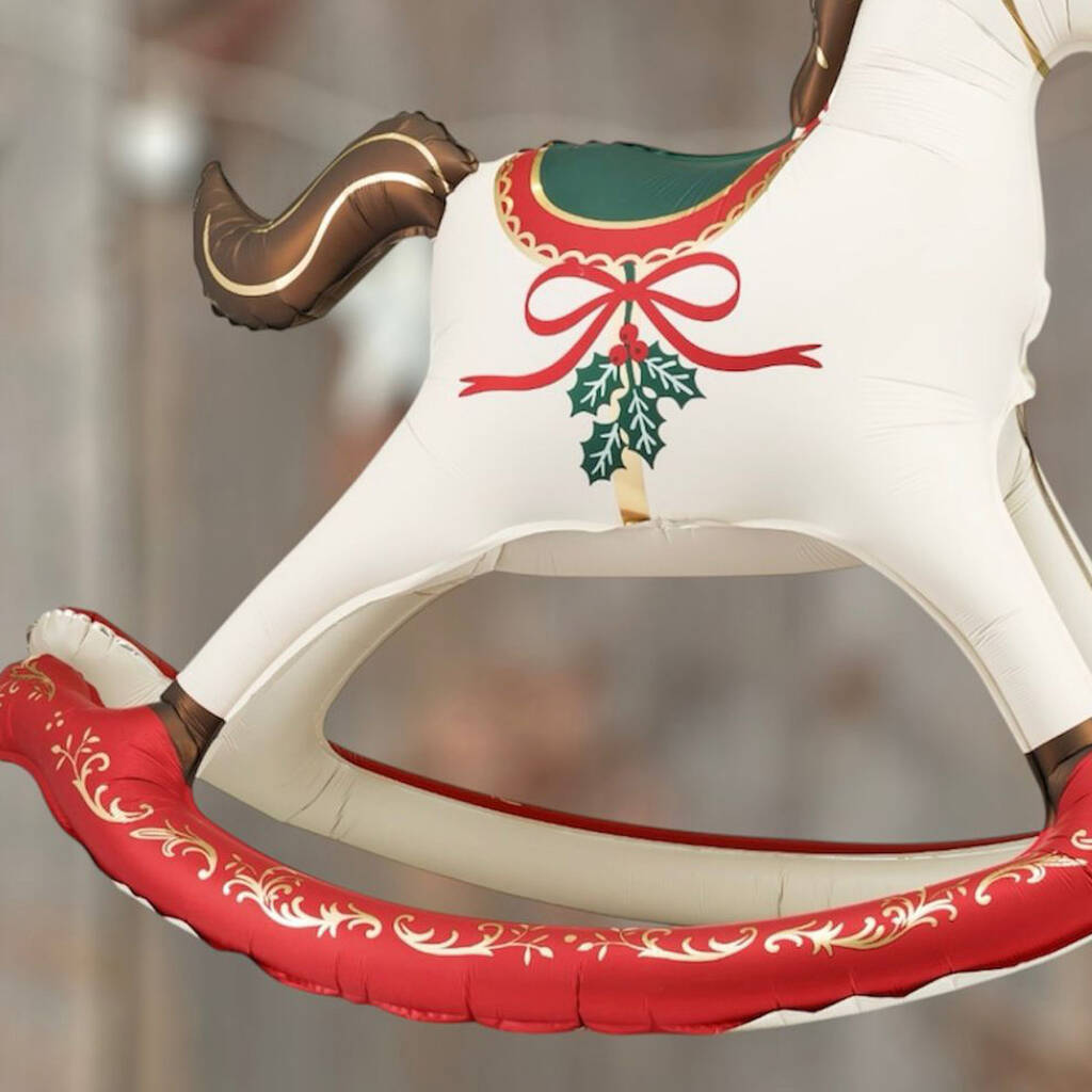 Festive Red And Green Foil Rocking Horse Balloon