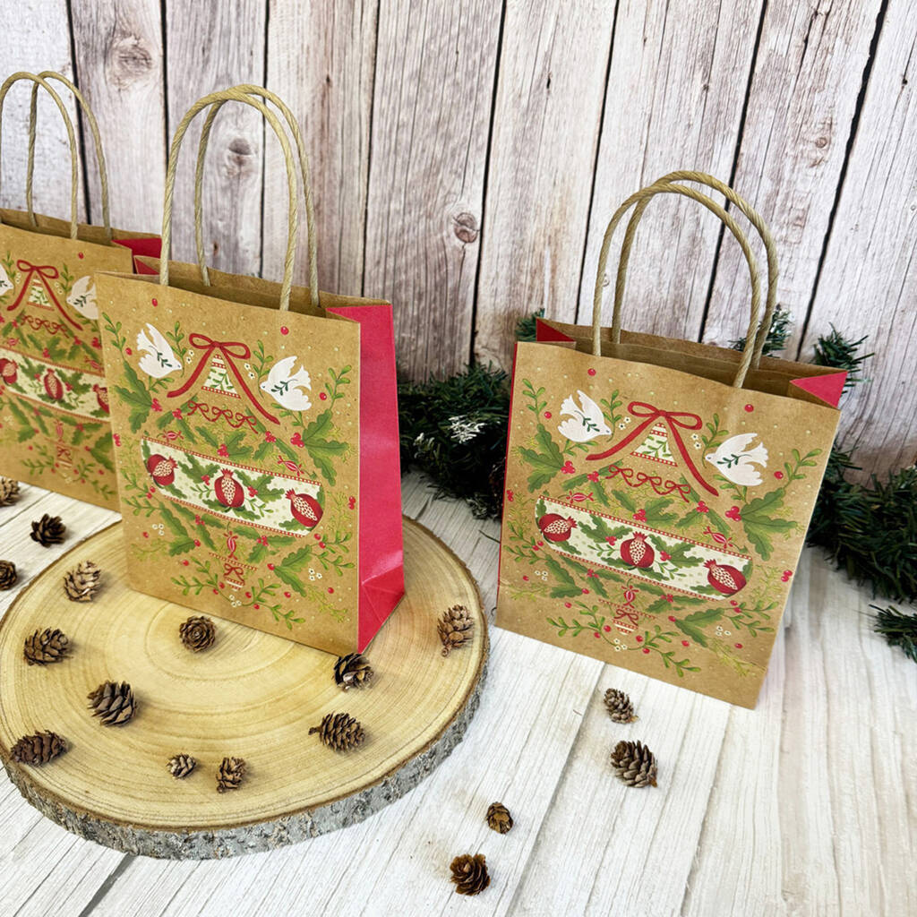 Folklore Christmas Wreath Bauble Gift Bags X Eight