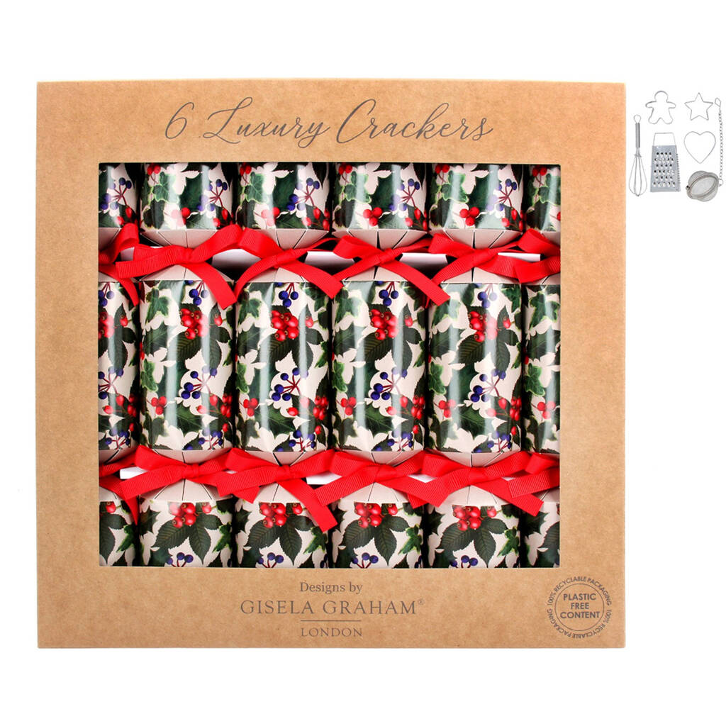 Gisela Graham Festive Holly Christmas Crackers Set Of Six