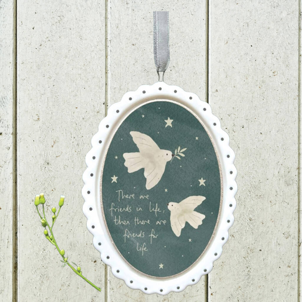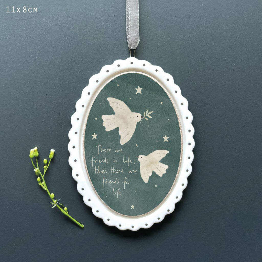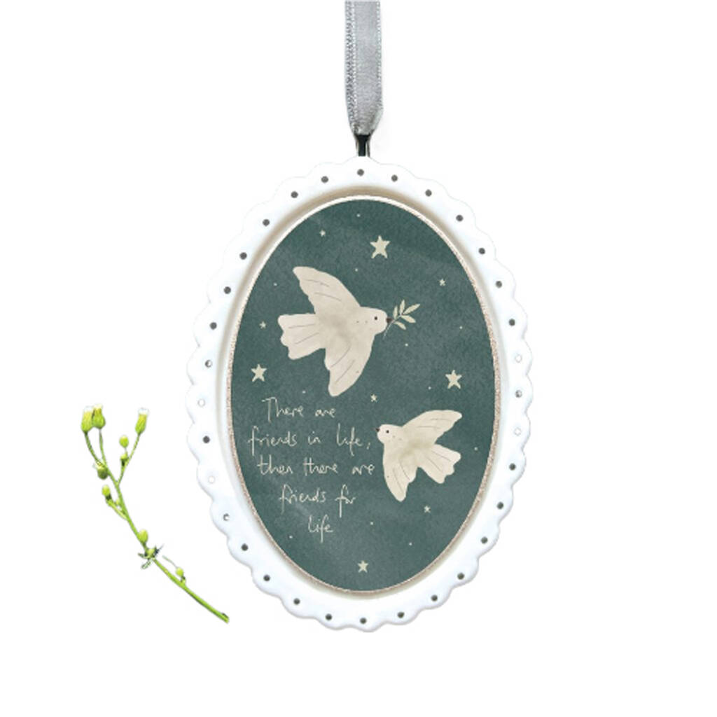 Grey And White Dove Hanging Porcelain Christmas Decoration