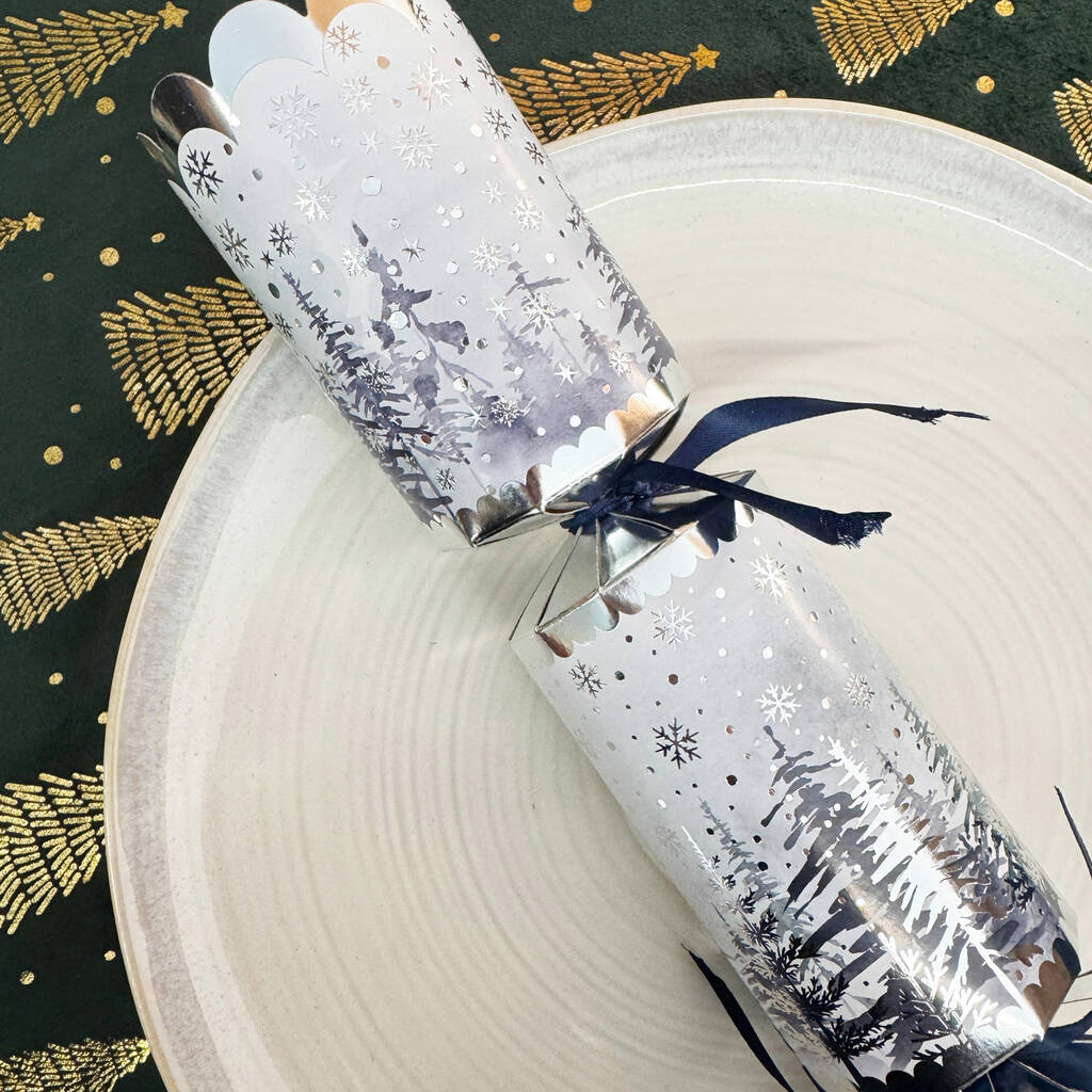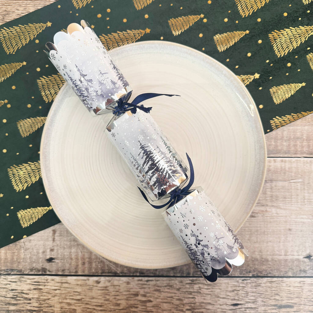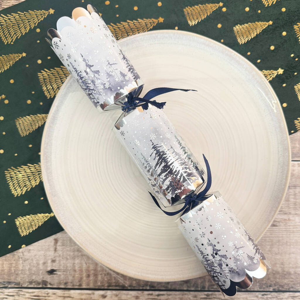 Luxury Silver And Blue Christmas Tree Scene Crackers X Six