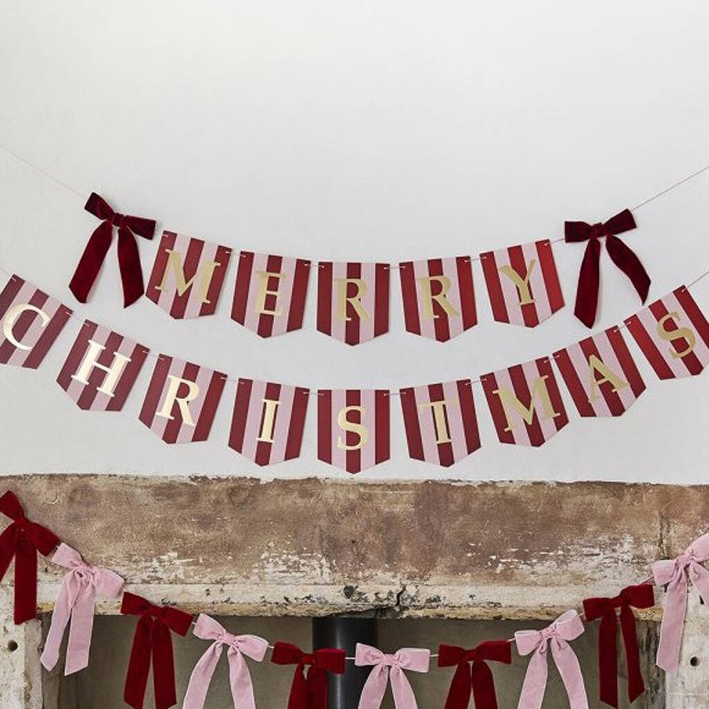 Merry Christmas Banner Velvet Bow Christmas Bunting 2m