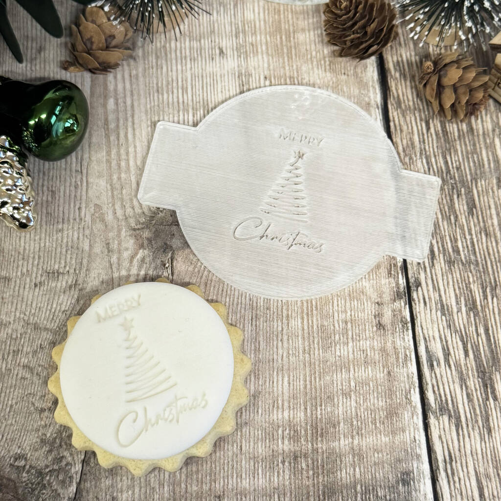 Merry Christmas Tree Acrylic Icing Embosser For Baking