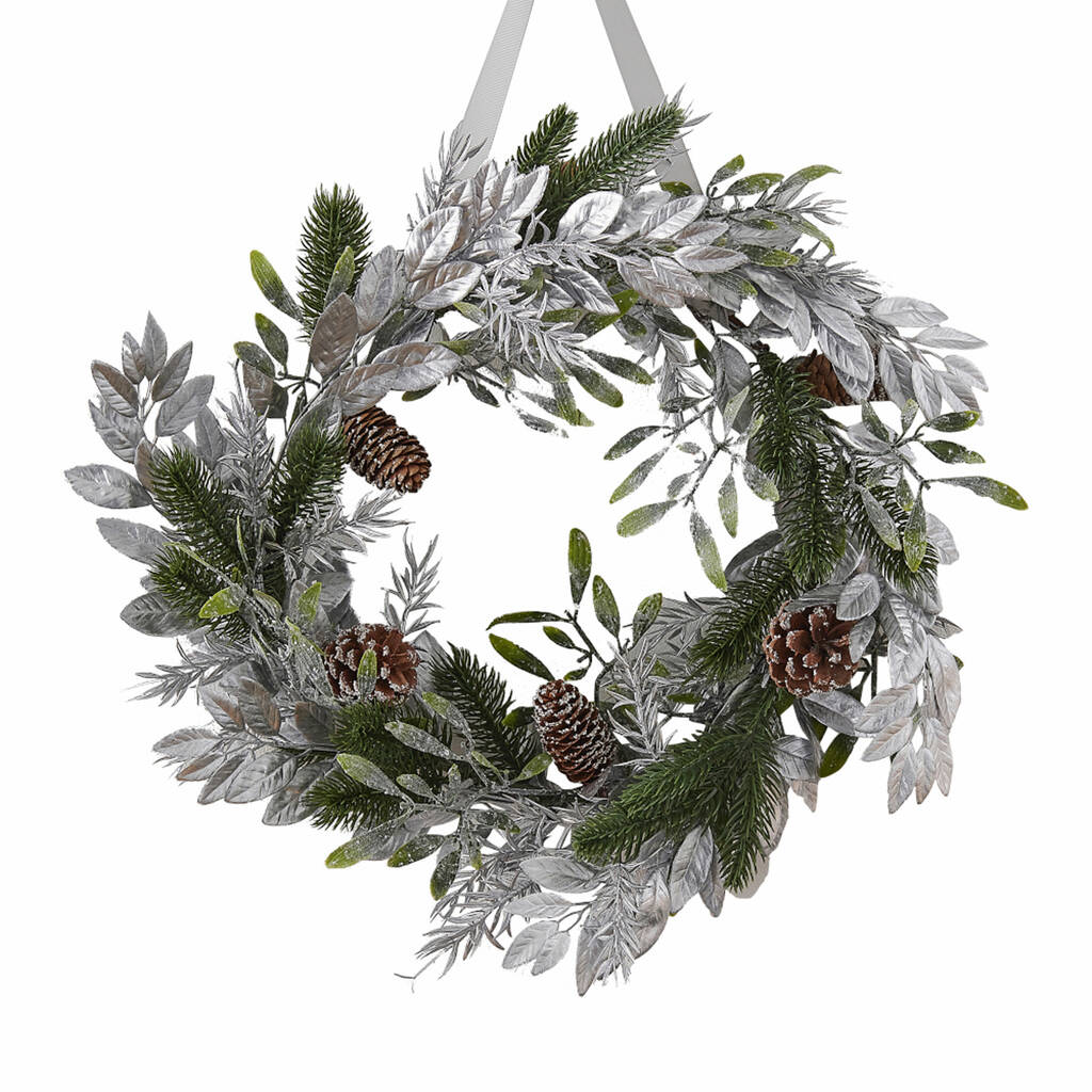 Mistletoe And Silver Foliage Hanging Artificial Christmas Wreath