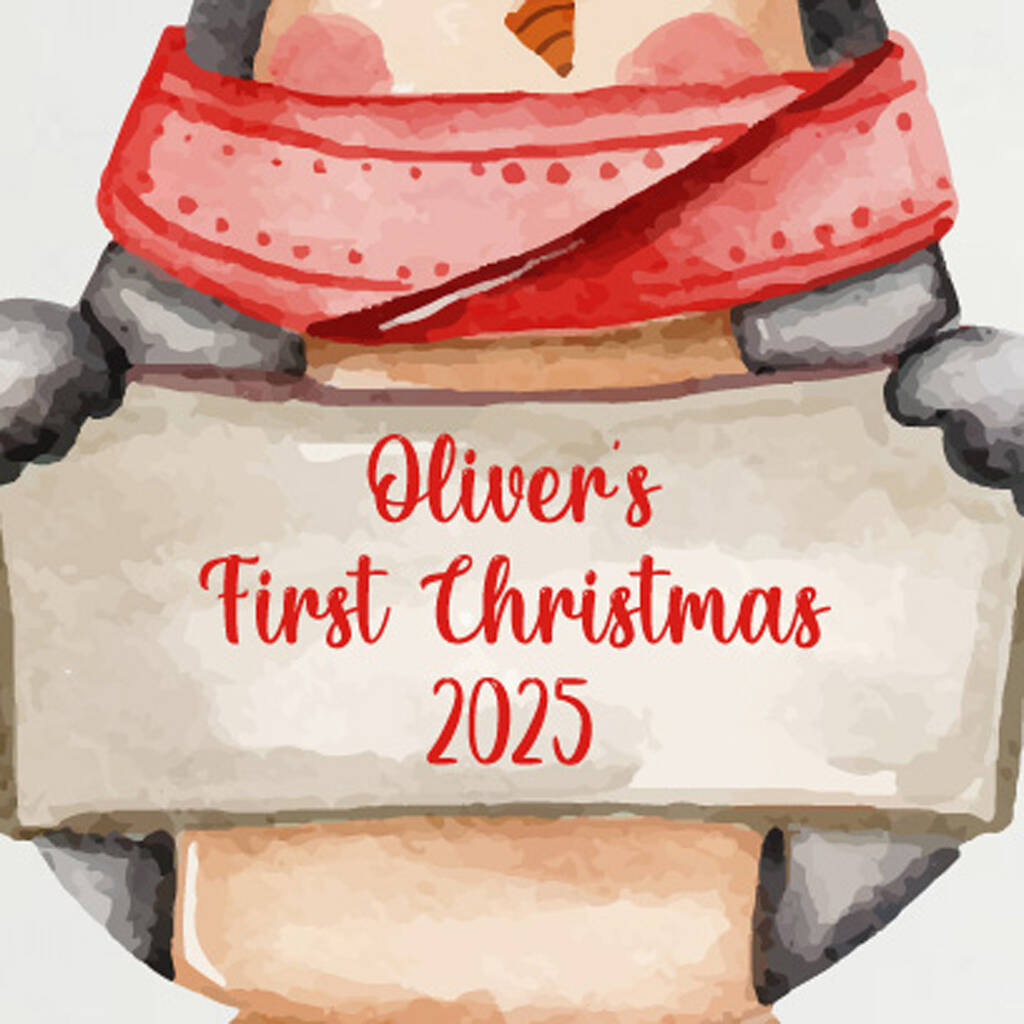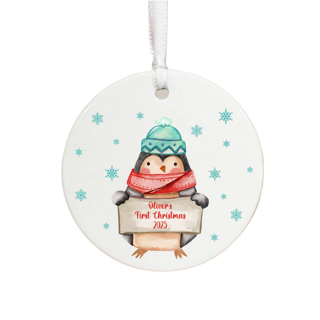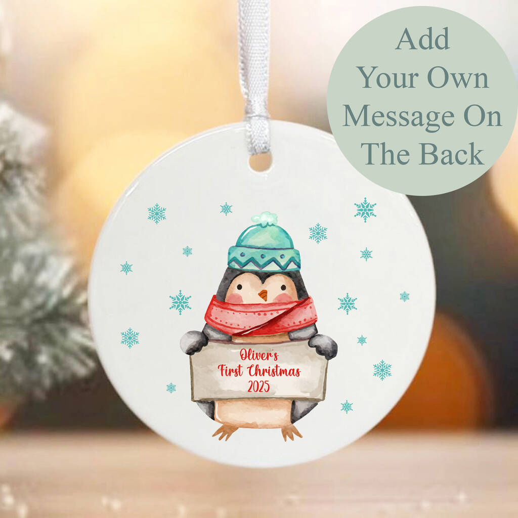 Personalised Baby's First Christmas Penguin Porcelain Christmas Bauble