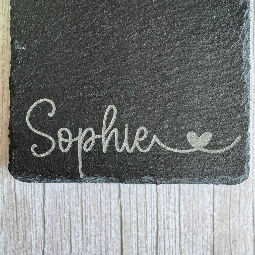 Personalised Engraved Slate Coaster With Heart Design Gift