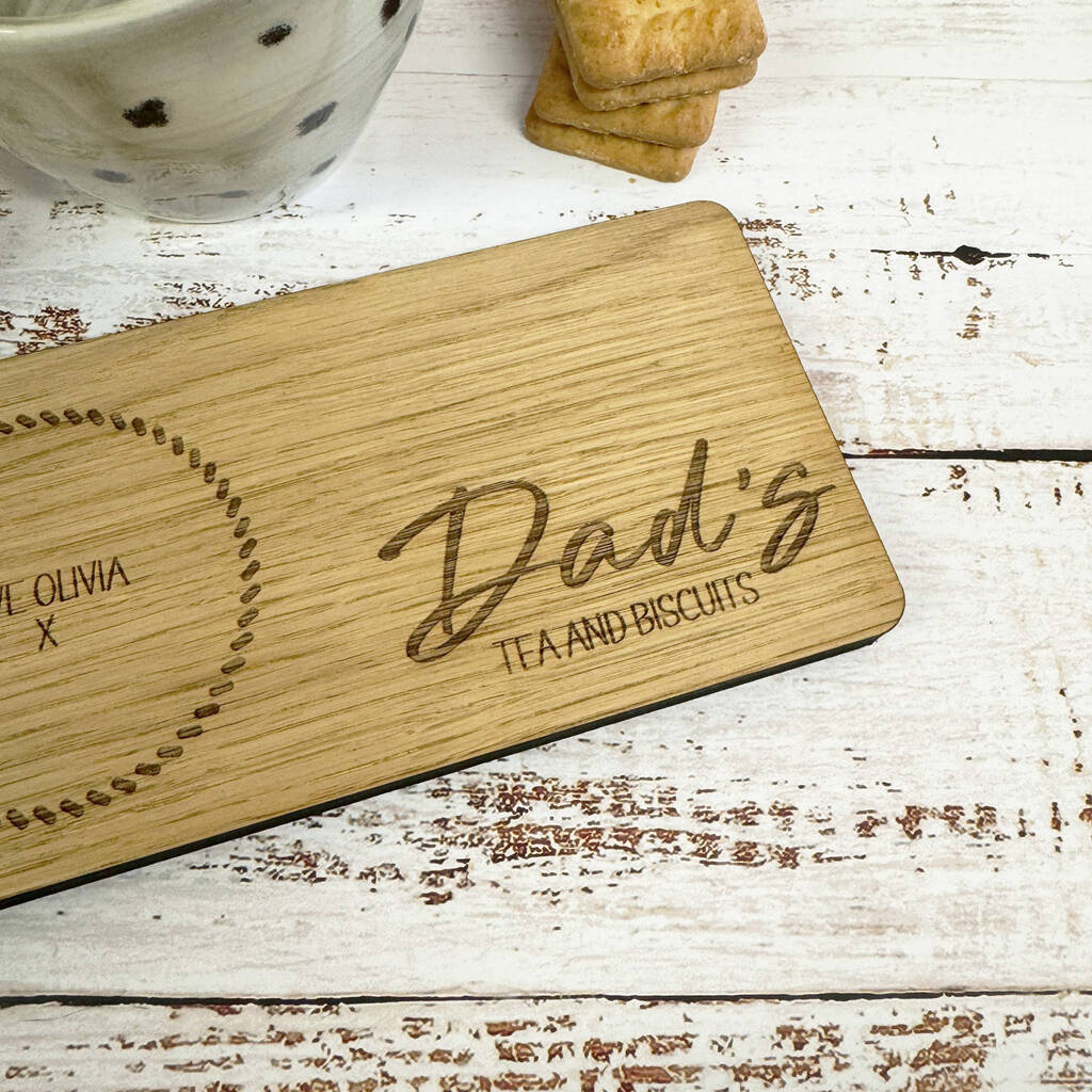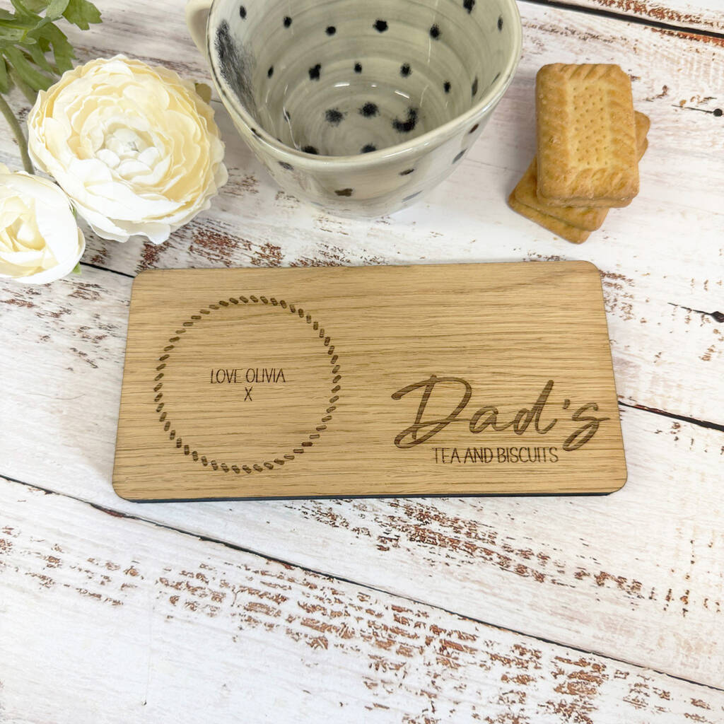 Personalised Oak Coaster Tray Dad Father Family Tea And Biscuits