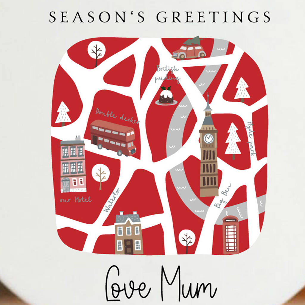 Personalised Red Christmas Bauble With London Design Keepsake Gift