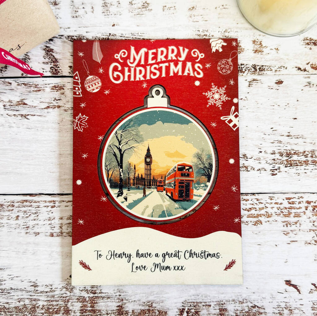 Personalised Red London Christmas Keepsake Card And Bauble Set