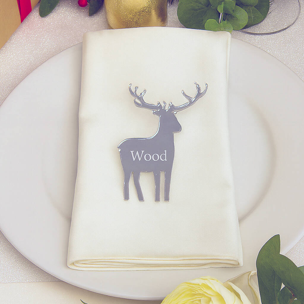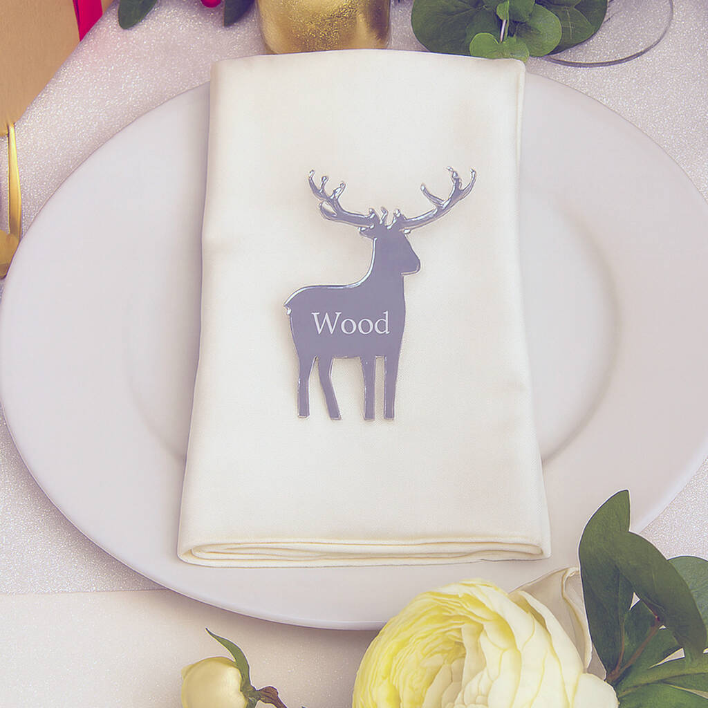 Personalised Silver Mirror Reindeer Christmas Place Name Card Setting