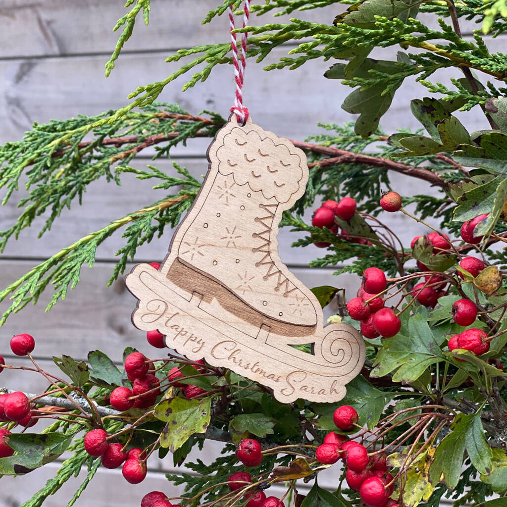 Personalised Wooden Ice Skate Christmas Tree Hanging Decoration