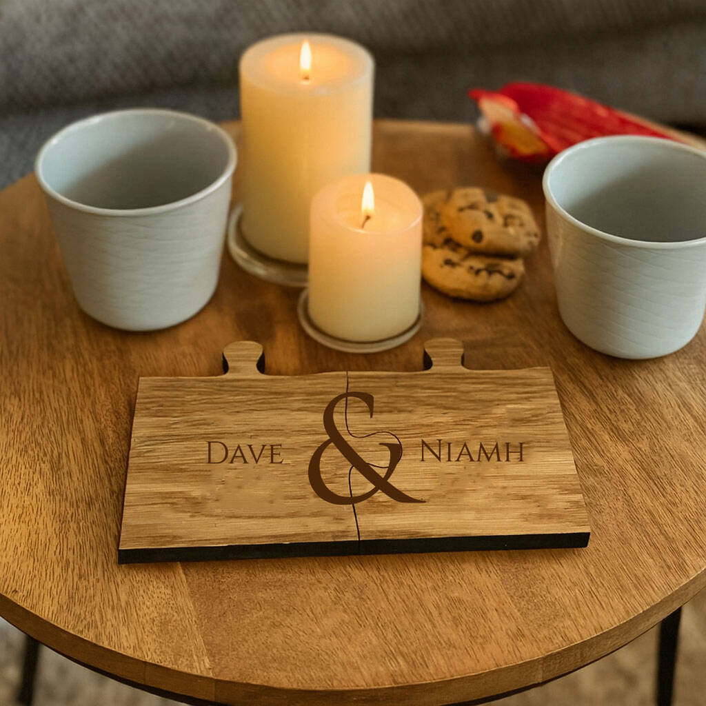 Personalised Wooden Jigsaw Coasters Set Of Two Anniversary Couples Gift