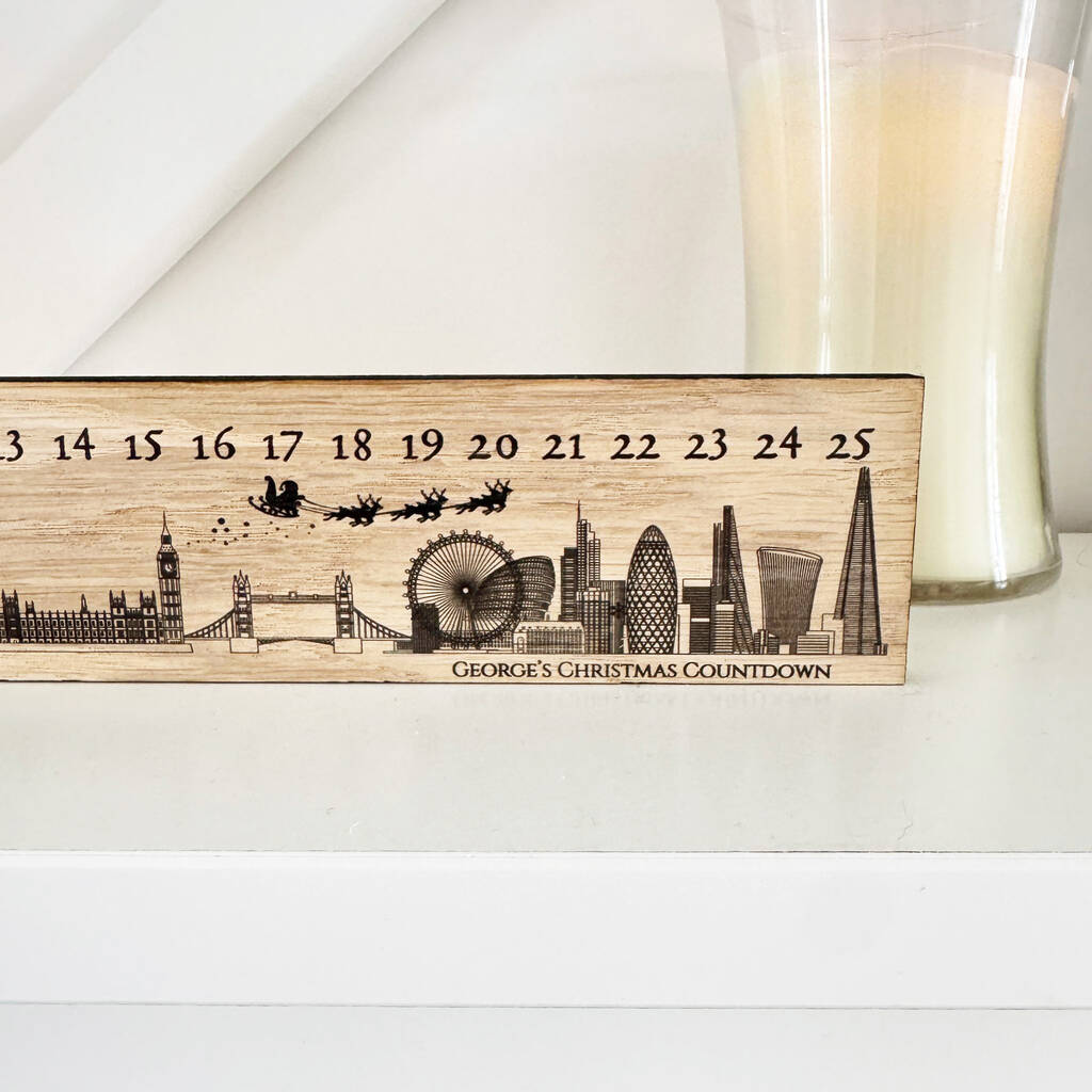 Personalised Wooden London Christmas Advent Slider Keepsake