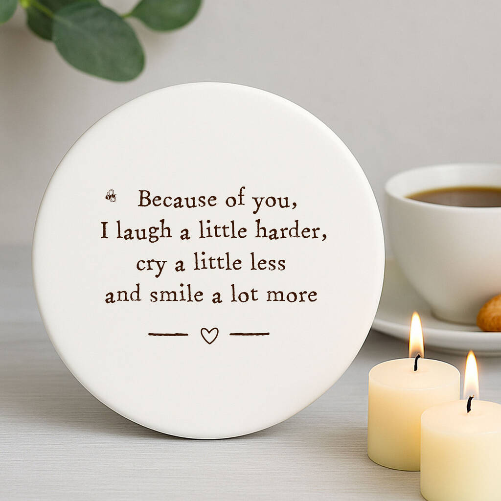 Porcelain Because Of You I Laugh A Little Harder Coaster Keepsake Gift