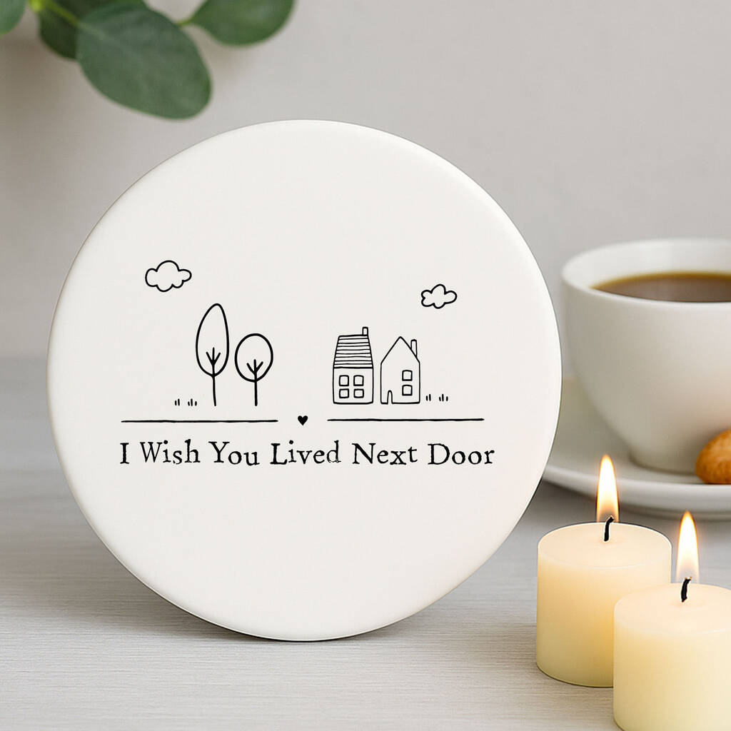 Porcelain Coaster 'I Wish You Lived Next Door' Keepsake Friend Gift