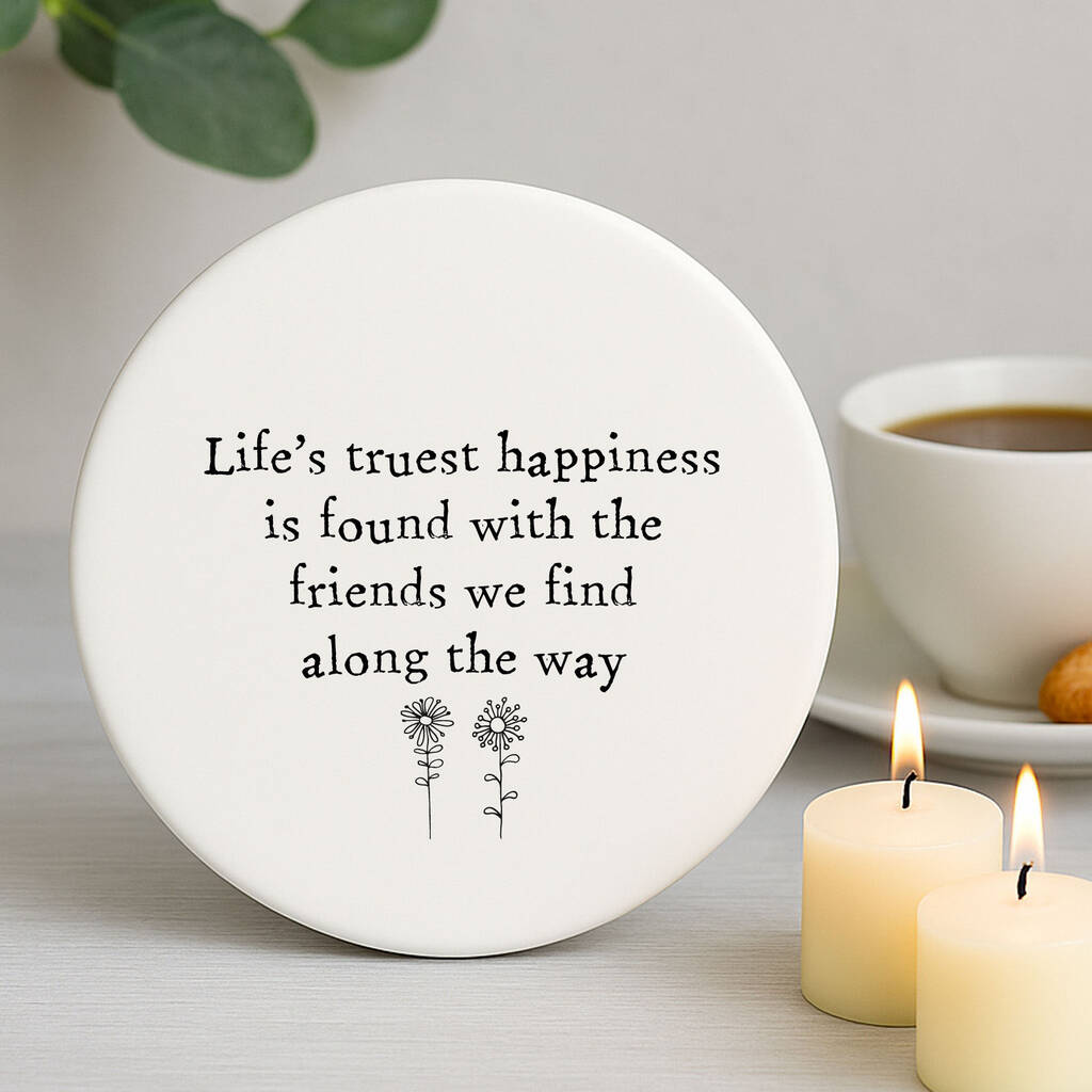 Porcelain Round Coaster Heartfelt Friendship Lifes Truest Happiness Gift