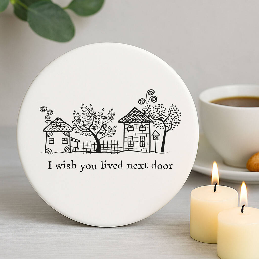 Round Porcelain Coaster I Wish You Lived Next Door Keepsake Gift