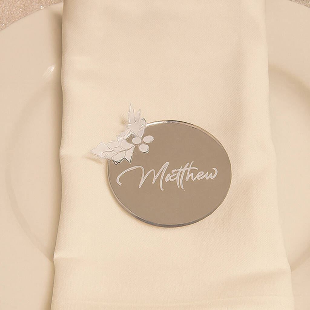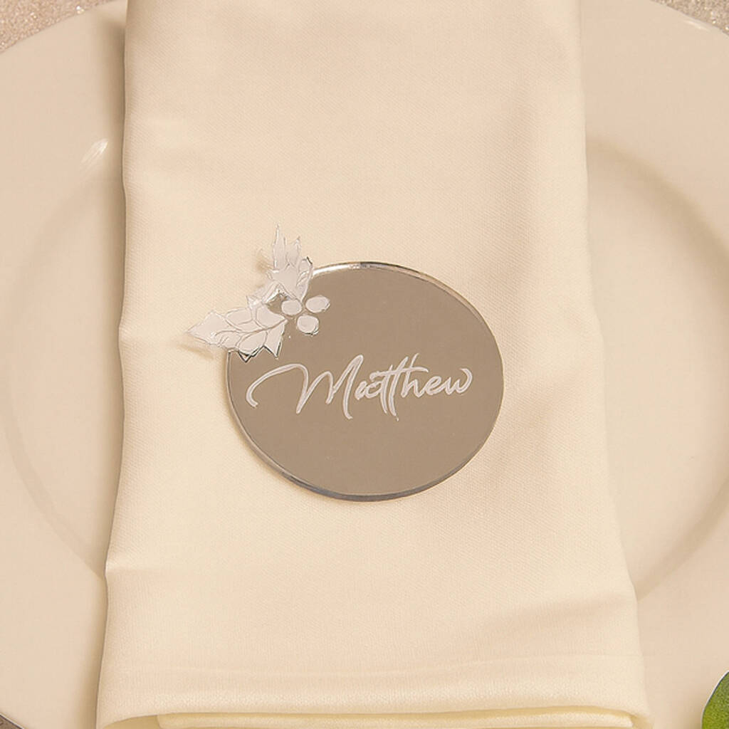 Silver Mirror Christmas Pudding Place Name Decorations Setting