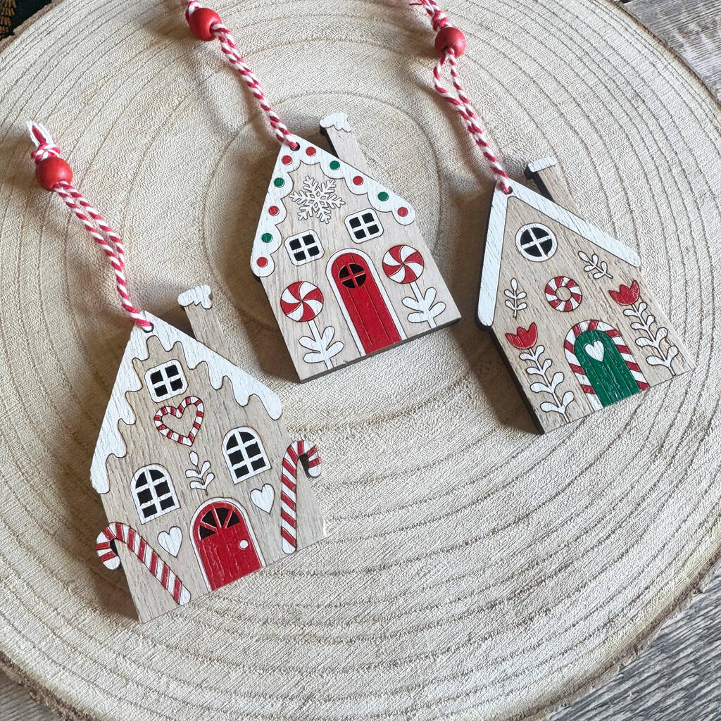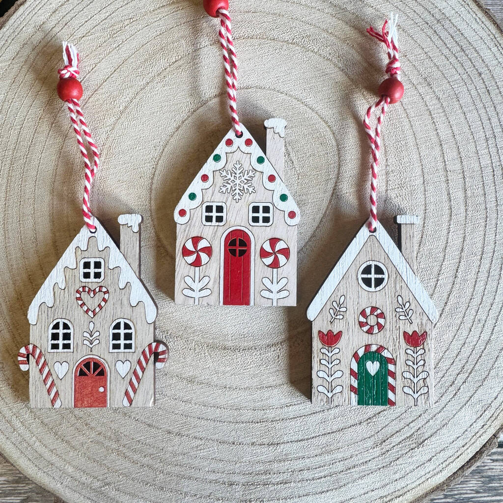 Wooden Gingerbread House Decorations Christmas Set Of Six