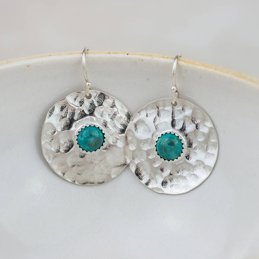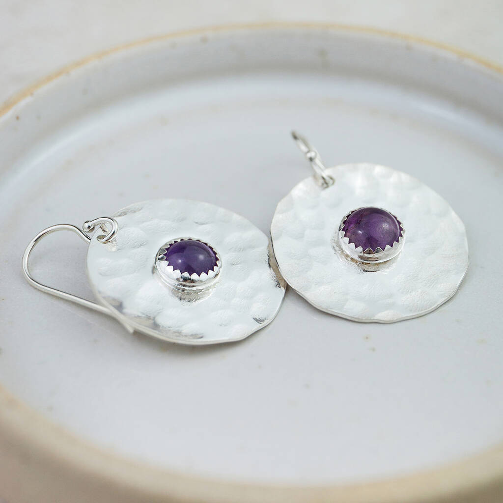 Sterling Silver Semi Precious Shield Earrings