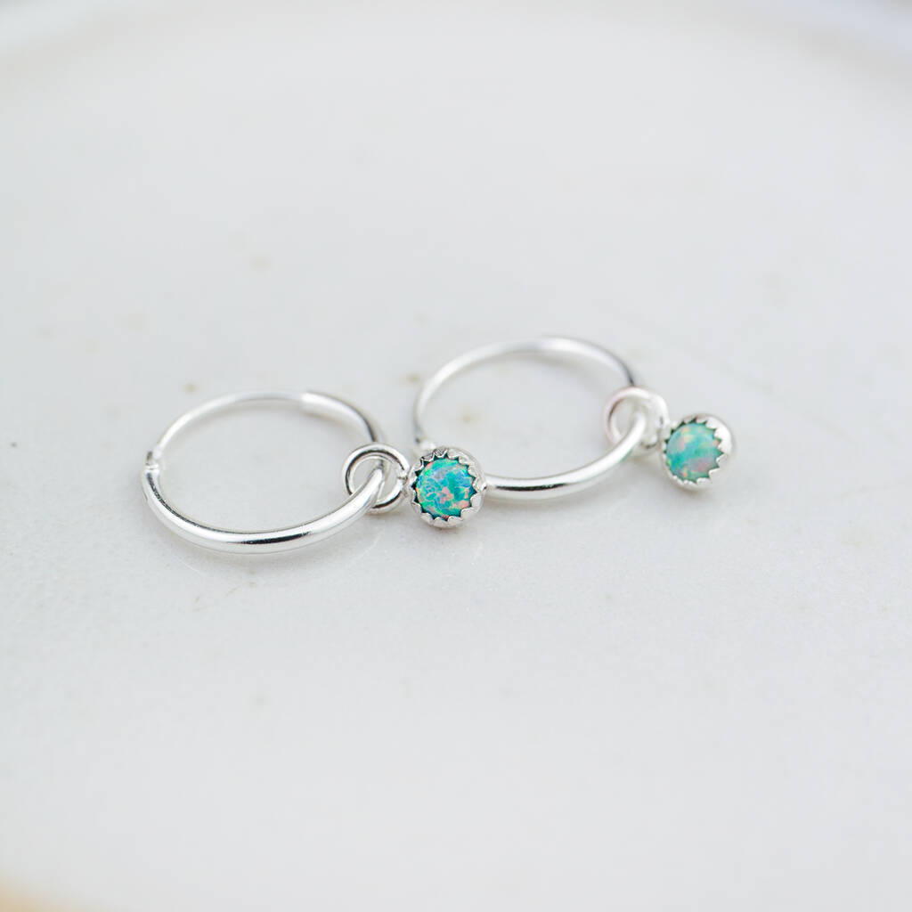 Handmade sterling silver mini sleeper huggie style hoops with semi precious stones.