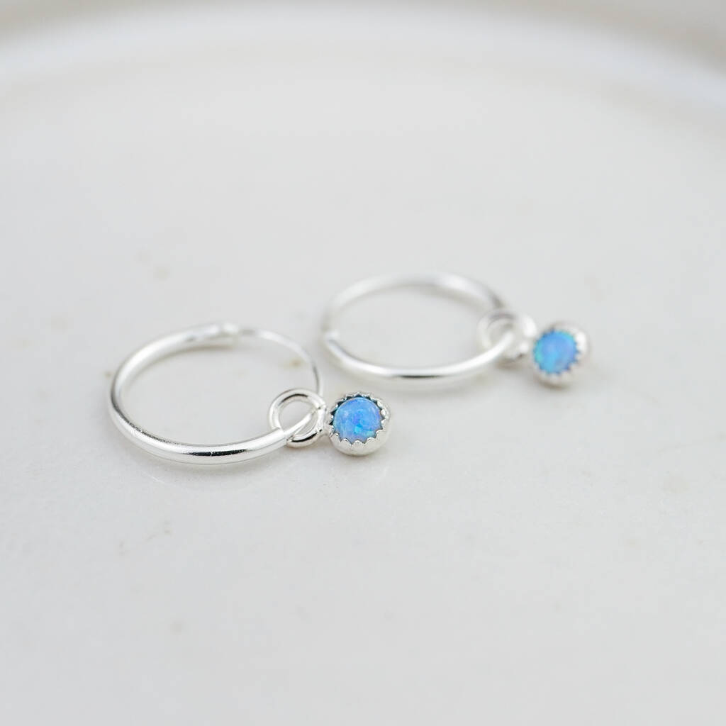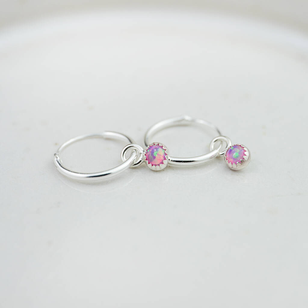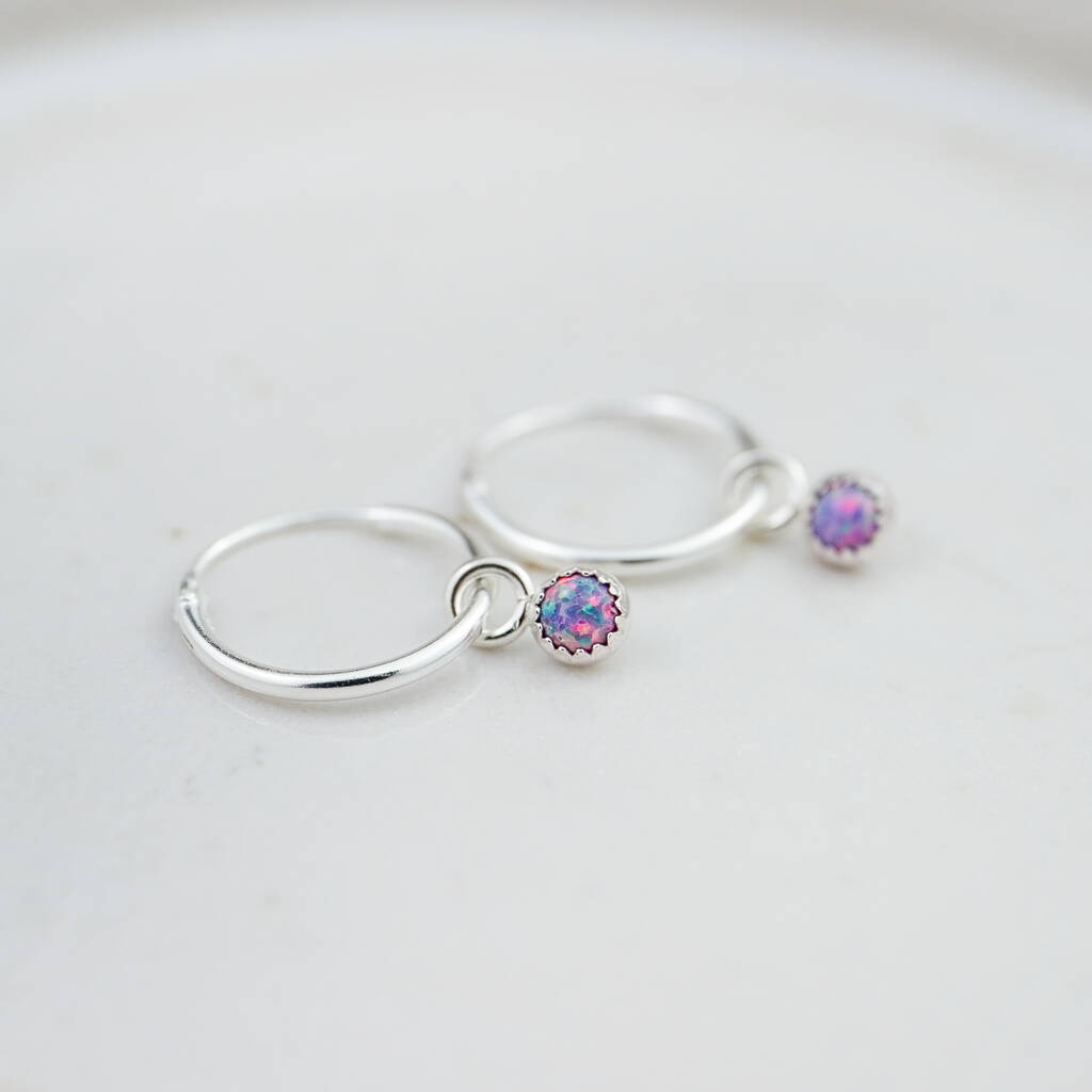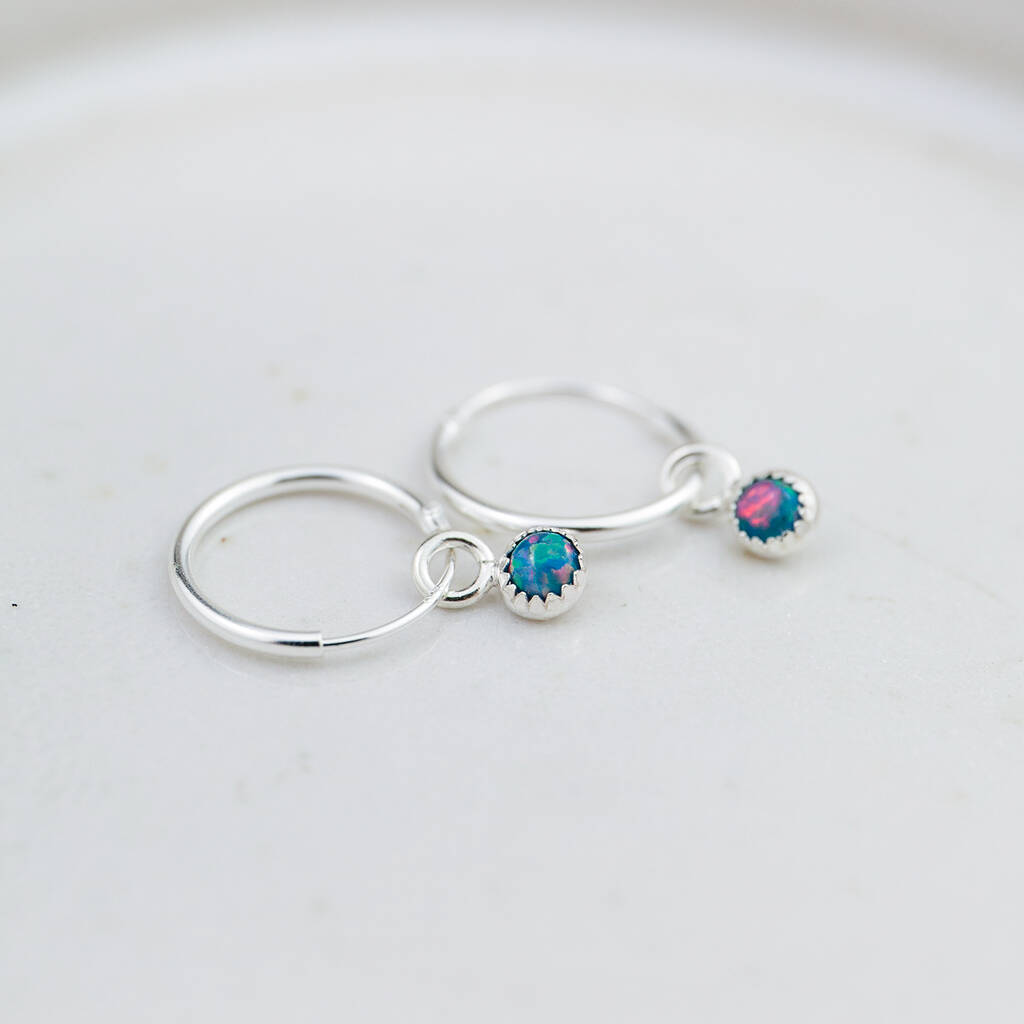 Each earring is made with a sterling silver sleeper hoop with a semi precious stone set in a sterling silver bezel drop charm. You can choose from your own birthstone or your favourite colour.