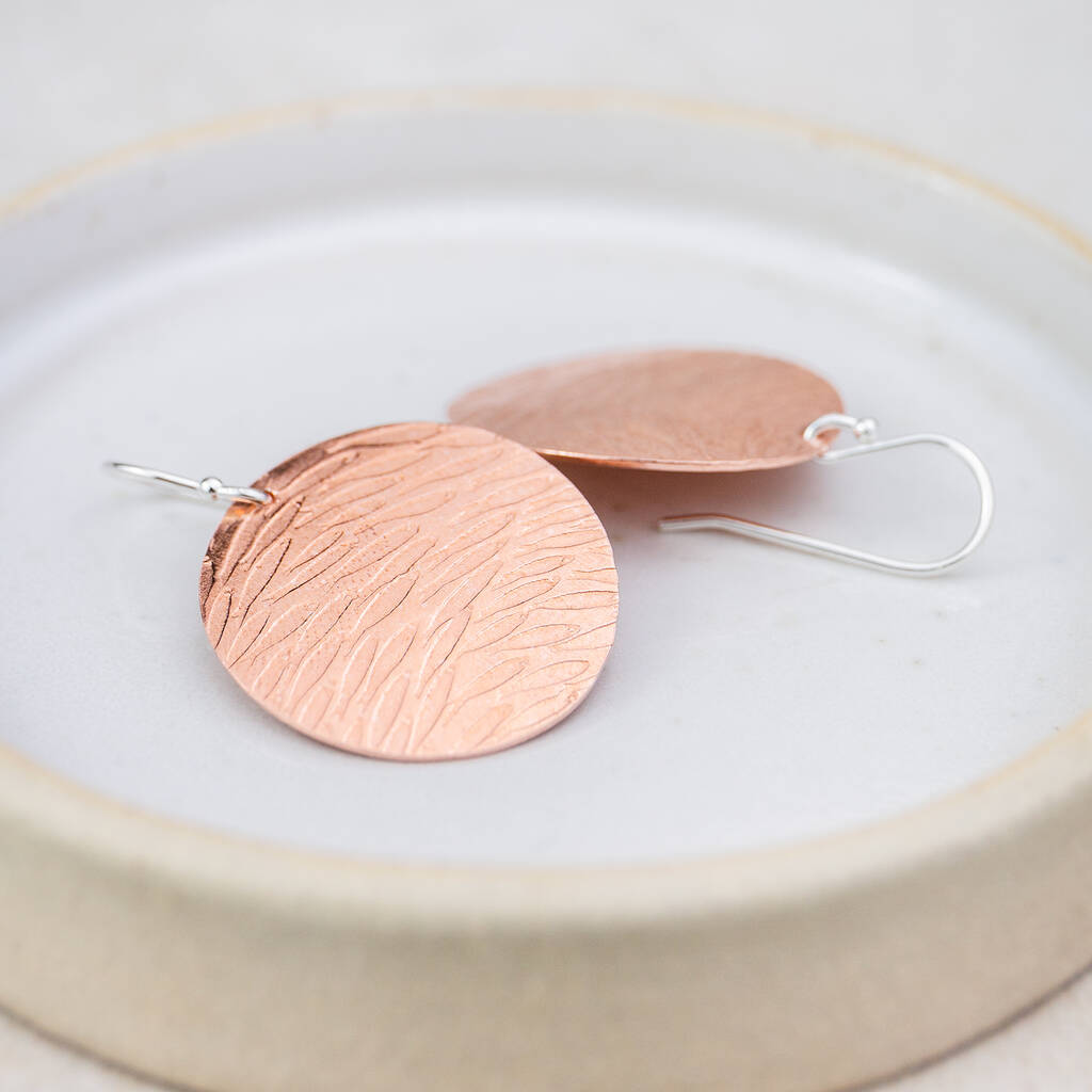 Sterling Silver And Copper Circle Textured Disc Earrings