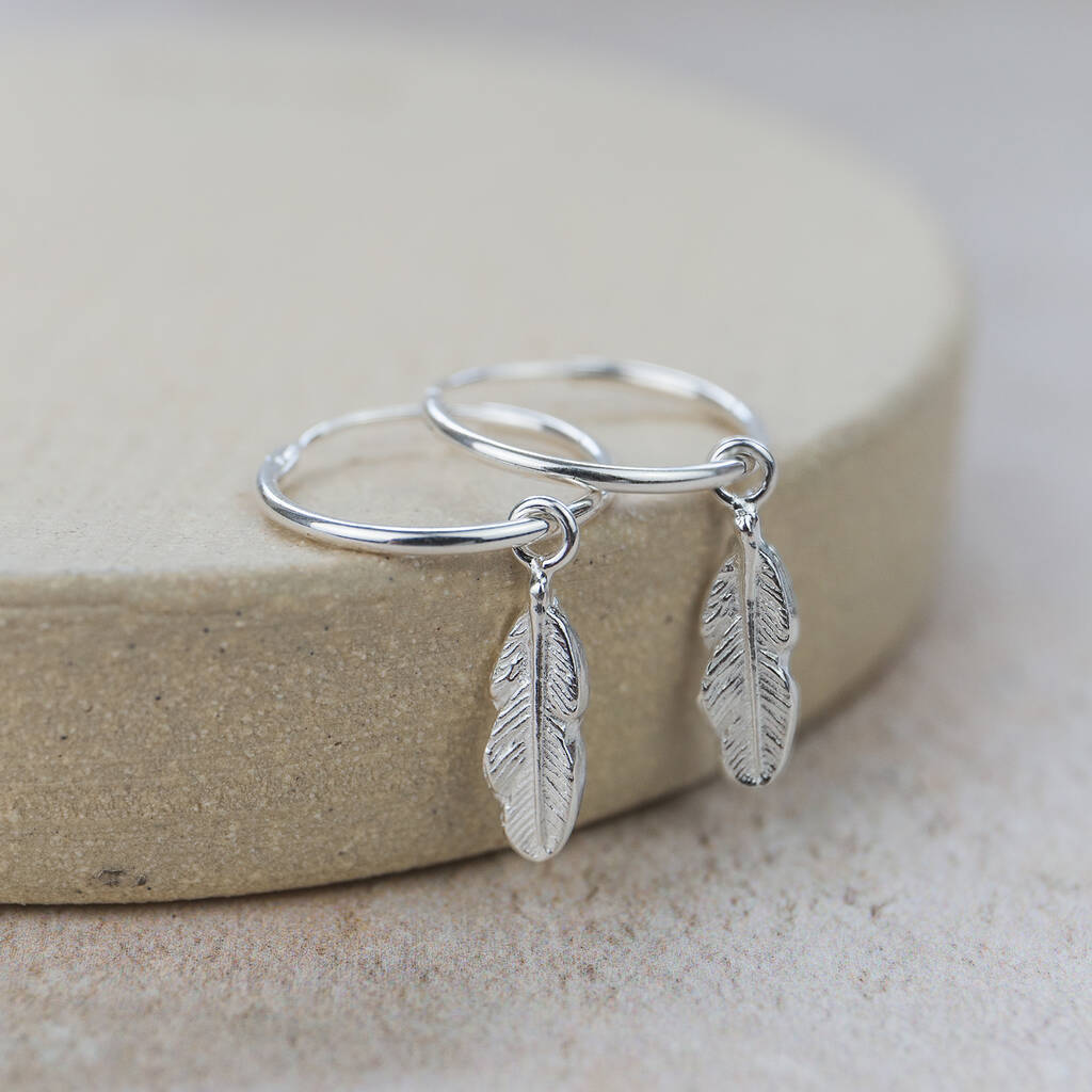 Sterling Silver Feather Charm Hoops
