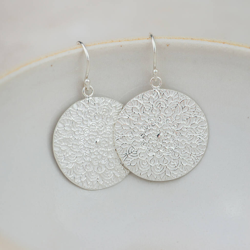 Sterling Silver Large Mandala Disc Earrings